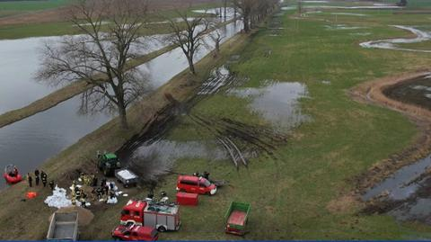 - Voda v tomto místě překročila varovnou hladinu o 19 centimetrů. Zaplavila zemědělskou půdu a louky, na některých místech se voda dostává pod domy," uvedl reportér TVN24.