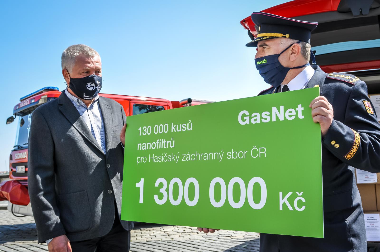 130 000 nanofiltrů v hodnotě 1,3 milionů korun dostal Hasičský záchranný sbor ČR od firmy GasNet CZ