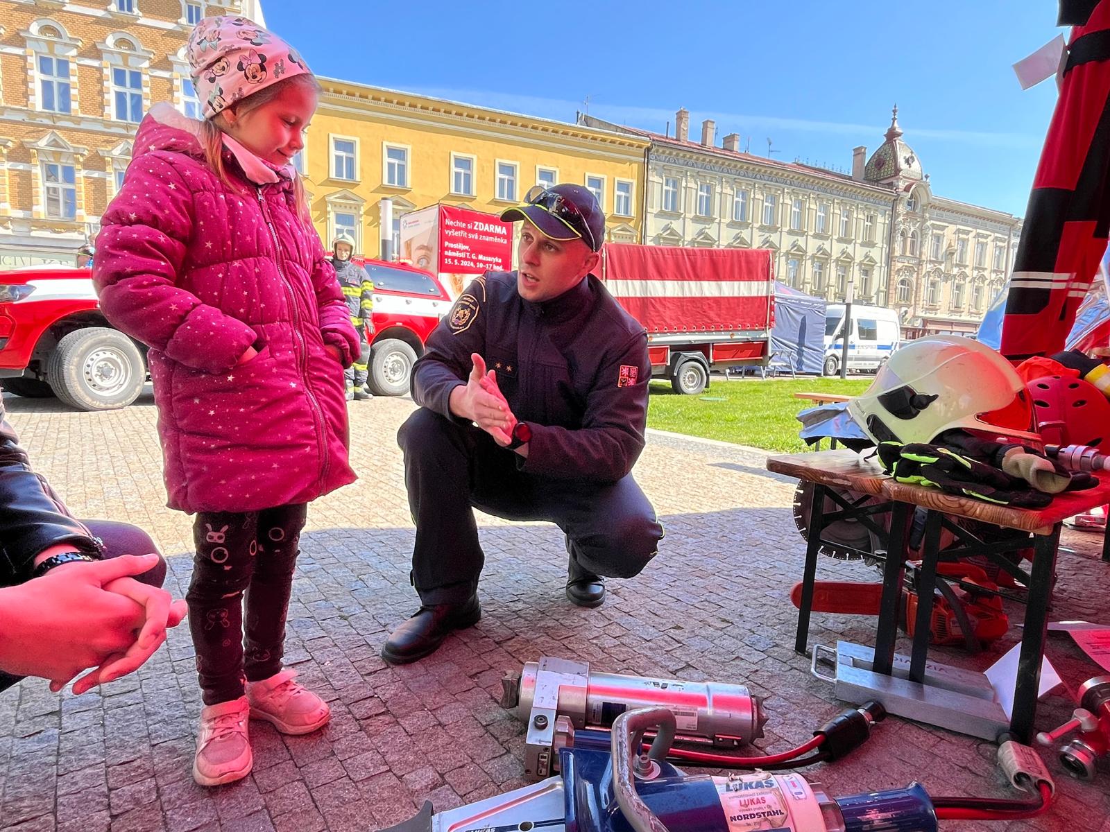 Přilby, vysílačky, zásahový oděv či hydraulické zařízení. To vše si mohli vyzkoušet dospělí a děti během pátečního dopoledne na náměstí T. G. Masaryka v Prostějově.