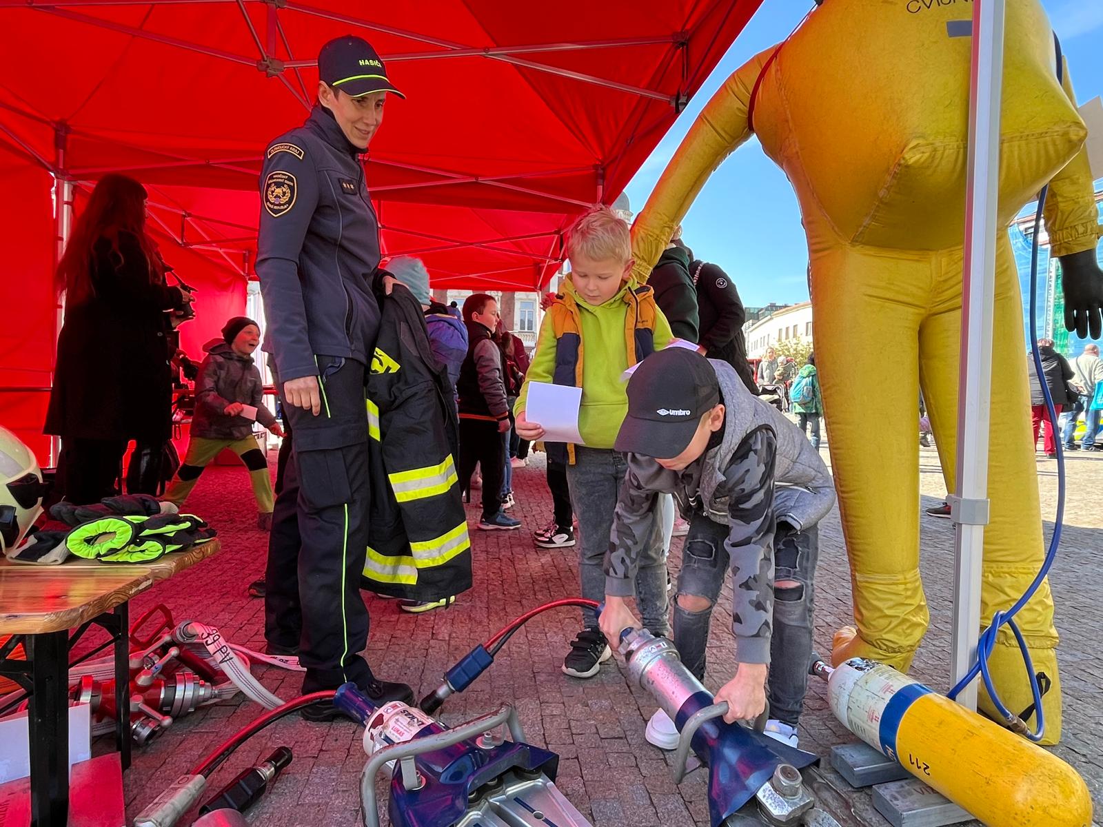 Přilby, vysílačky, zásahový oděv či hydraulické zařízení. To vše si mohli vyzkoušet dospělí a děti během pátečního dopoledne...