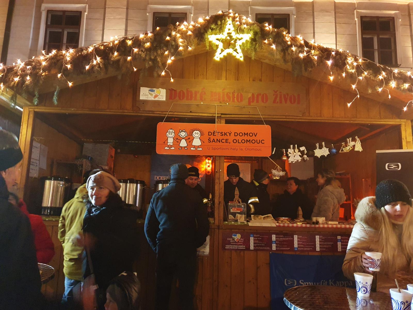 Díky patří také organizaci Dobré místo pro život, v jejímž stánku jsme mohli punč na podporu dětí prodávat. Ve stánku jsme se v neděli vystřídali se společností Smurfit Kappa Olomouc s.r.o., která se spolu s námi na tradiční benefiční akci letos podílela.