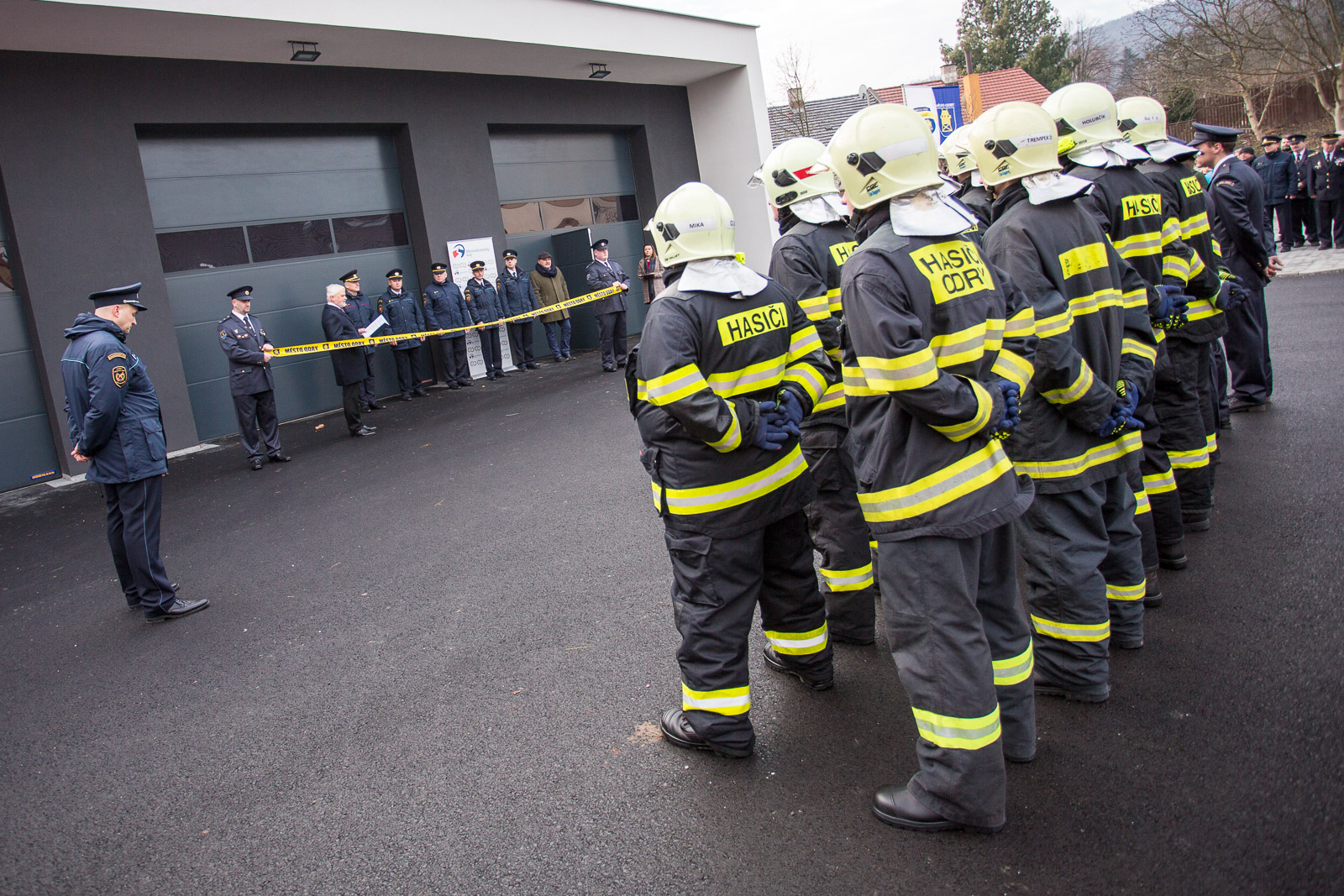 Slavnostního otevření se zúčastnili kromě samotných členů jednotky sboru dobrovolných hasičů také zástupci města Odry v čele se starostou Ing. Liborem Helisem a představitelé dodavatelských firem.