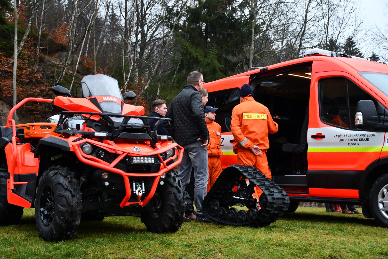 Hasičský záchranný sbor Libereckého kraje v pátek 13. ledna 2023 v Løype areálu ve Smržovce prezentoval nově pořízenou techniku – kynologické vozidlo, čtyřkolku a šestikolku.