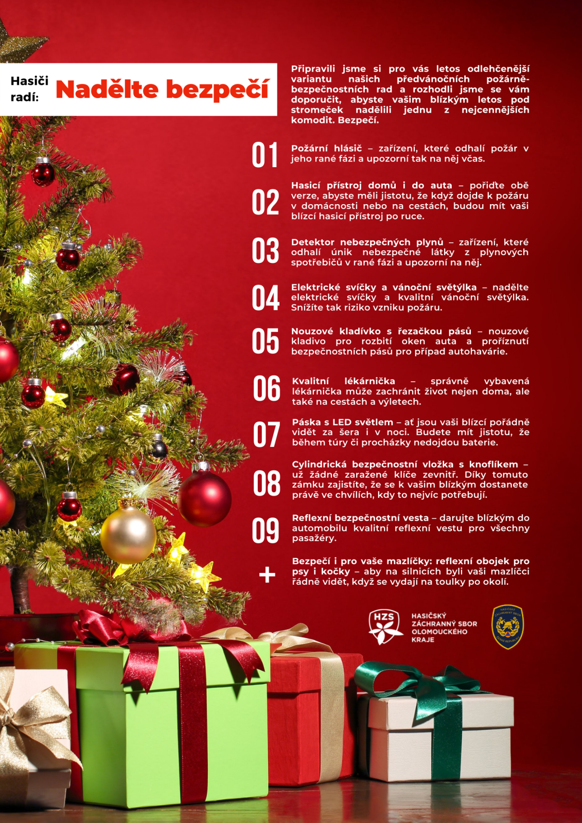 Připravili jsme si pro vás letos odlehčenější variantu našich předvánočních požárně-bezpečnostních rad a rozhodli jsme se vám doporučit, abyste vašim blízkým letos pod stromeček nadělili jednu z nejcennějších komodit. Bezpečí.