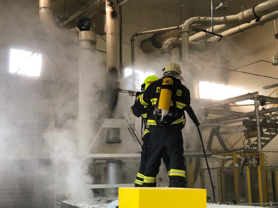 Požár vzduchotechnického potrubí ve výrobní hale firmy Smart Wood Czech v Libčanch, okr. Hradec Králové, 22. 7. 2018
