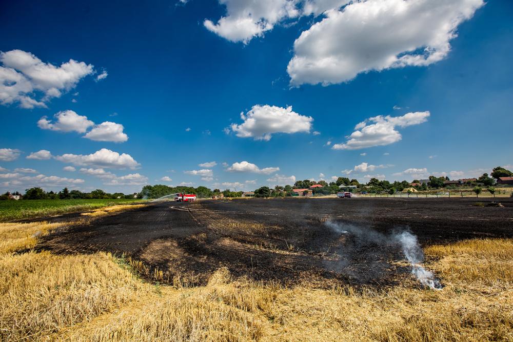 Požár kombajnu, Nepolisy, okr. Hradec Králové, 5. 7. 2018