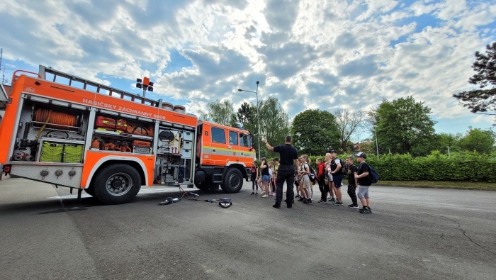 Do dnů požární bezpečnosti se tradičně zapojují také dobrovolní hasiči z Hrabyně (okres Opava). I letos připravili pro školáky a předškoláky překážkovou dráhu, ukázali jim svou moderní techniku a pohovořili o své činnosti.