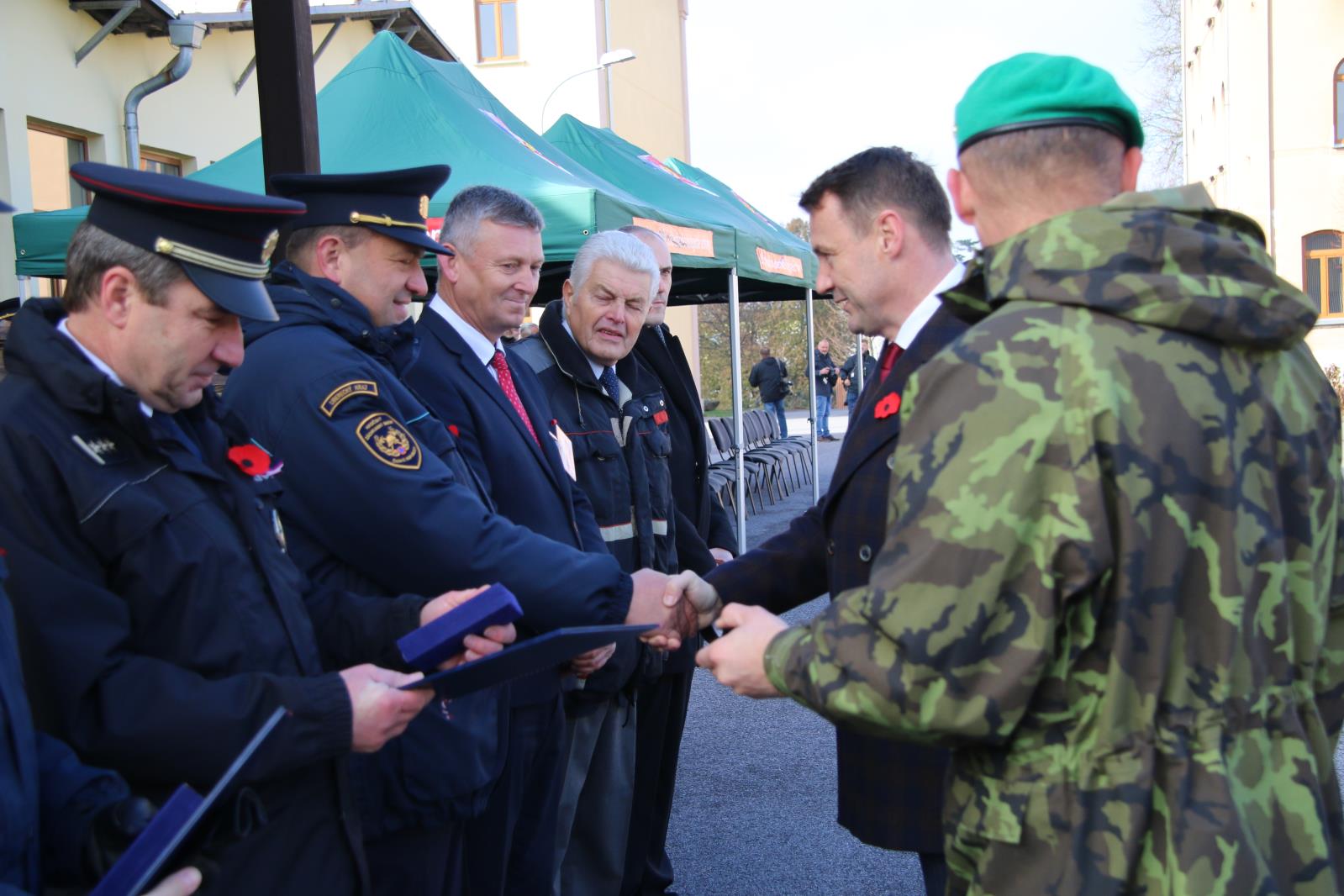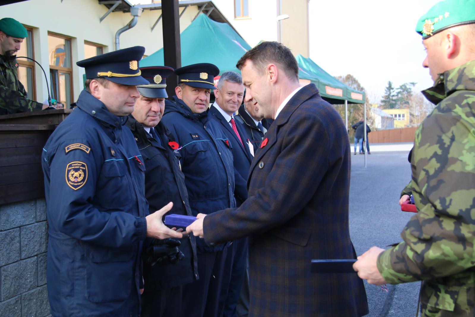 Krátce po jedenácté hodině se v libereckých kasárnách uskutečnil slavnostní nástup 31. prchbo. Hejtman Martin Půta během slavnostního aktu vyznamenal příslušníky integrovaného záchranného systému záslužnou medailí I. a II. stupně. Mezi oceněnými byli také příslušníci Hasičského záchranného sboru Libereckého kraje.