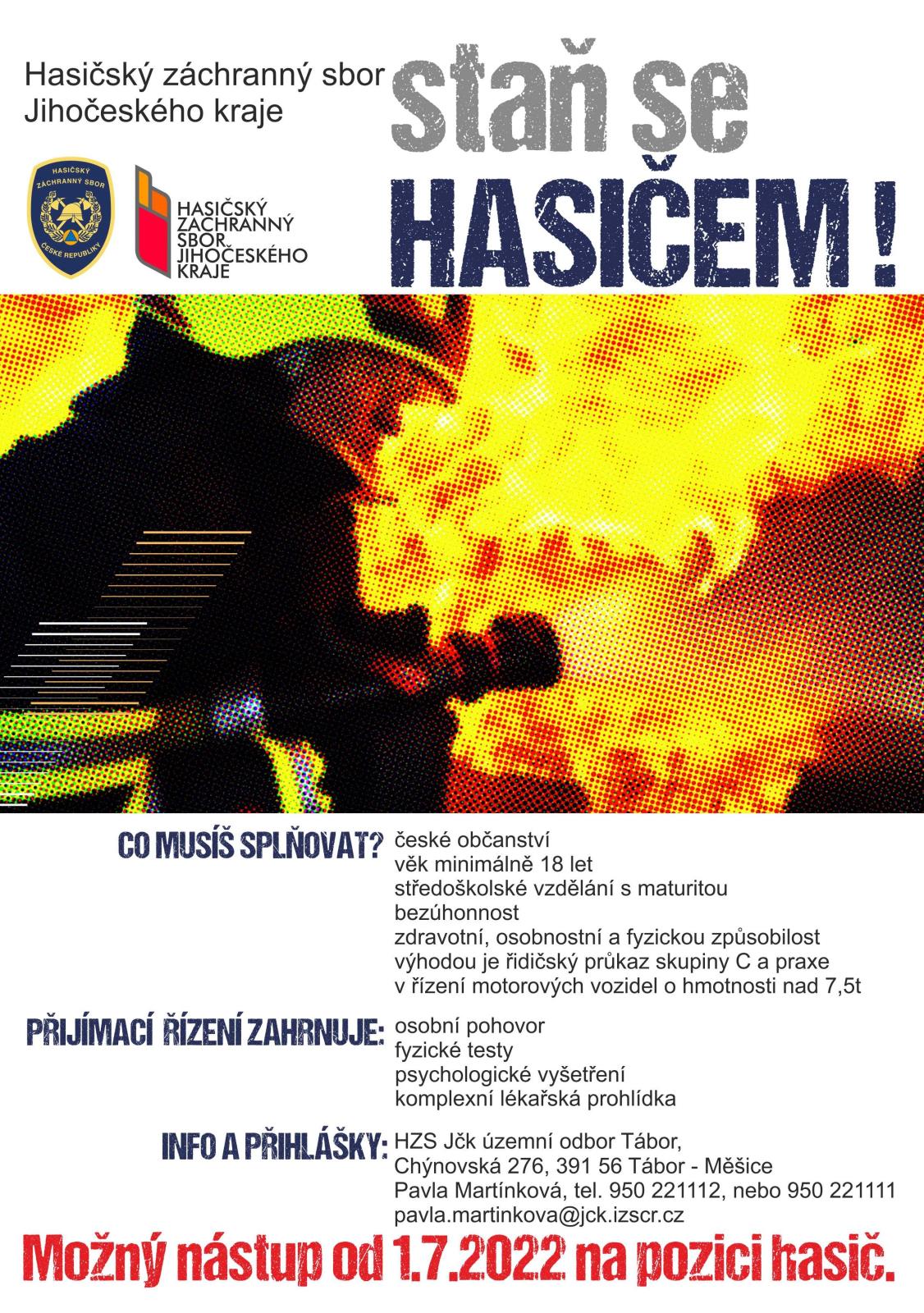 Na stanice územního odboru Tábor hledáme dva nové výjezdové hasiče. Máš-li zájem - volej, piš..
