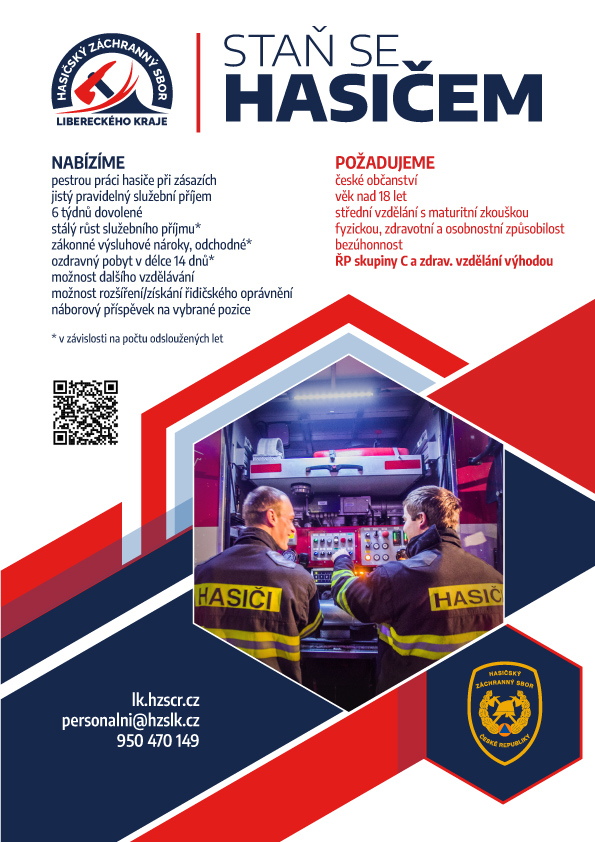 Hasičský záchranný sbor Libereckého kraje hledá do svých řad nové příslušníky – hasiče do výjezdu.