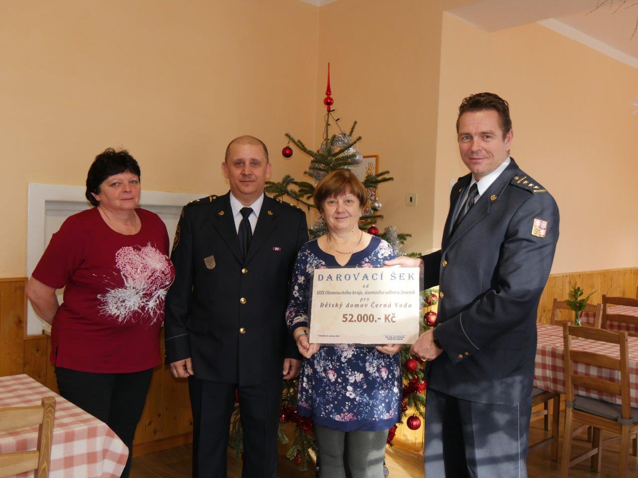 Hasiči při dvou akcích prodali 360 litrů předvánočního punče na Masarykově náměstí v Jeseníku a utržili tak 52 tisíc korun, které dnes ve formě darovacího šeku oficiálně předali zástupcům dětského domova. Třiadvacet dětí za příspěvek také může jet na letní tábor, na výlety a kulturní akce během letošního roku. „Jsme moc spokojeni, že jsme mohli takto podpořit aktivity dětí z dětského domova. Vážíme si podpory lidí v Jeseníku, kteří si u nás punč koupili a spolu s námi tak přispěli,“ podotkl Jan Pastucha, ředitel územního odboru Jeseník HZS Olomouckého kraje.