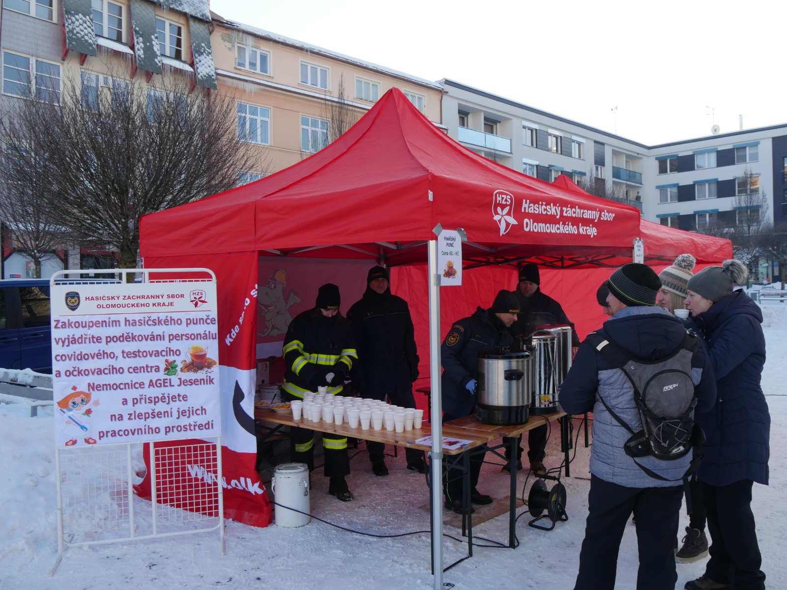 Tradiční charitativní akce v Jeseníku na Masarykově náměstí byla opět úspěšná. Díky prodeji hasičského punče získali jeseničtí hasiči 36 tisíc korun, které dnes věnovali jako poděkování za péči odběrovému, covidovému a očkovacímu centru jesenické nemocnice.