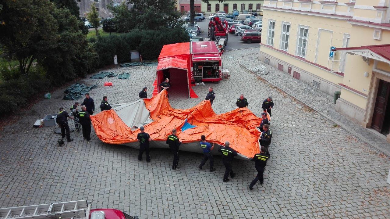 Praktická ukázka kontejneru nouzového přežití HZS Královéhradeckého kraje proběhla v rámci odborné přípravy Krizového štábu ORP Broumov.