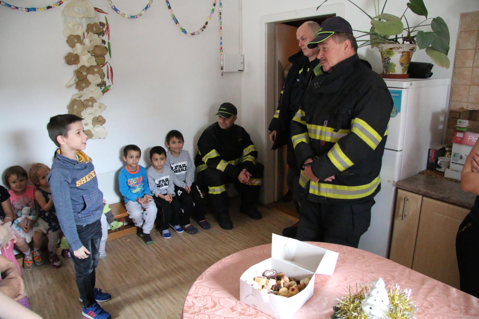 Hasiči přivezli dětem také vlastní cukroví, které pak s nimi společně ochutnali. Děti jim za odměnu zazpívaly vánoční i nevánoční koledy, které znaly a s noblesou jim je i předvedly. Hasiči se také dozvěděli, které vánoční pohádky mají děti nejraději a na jaké se ještě do konce roku těší. Nejvíce však všechny děti zajímala hasičská technika, kterou si venku, i za nepříznivého počasí, prohlédly, vyzkoušely a díky některým zvídavým jedincům také hodně naučily. Z některých z nich prý budou hasiči, tak uvidíme. Hasiči mají, díky této návštěvě, za sebou trénink na povinné každoroční přezkoušení, které je brzy čeká a určitě splní na jedničku.