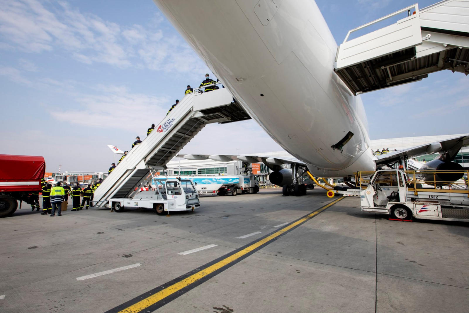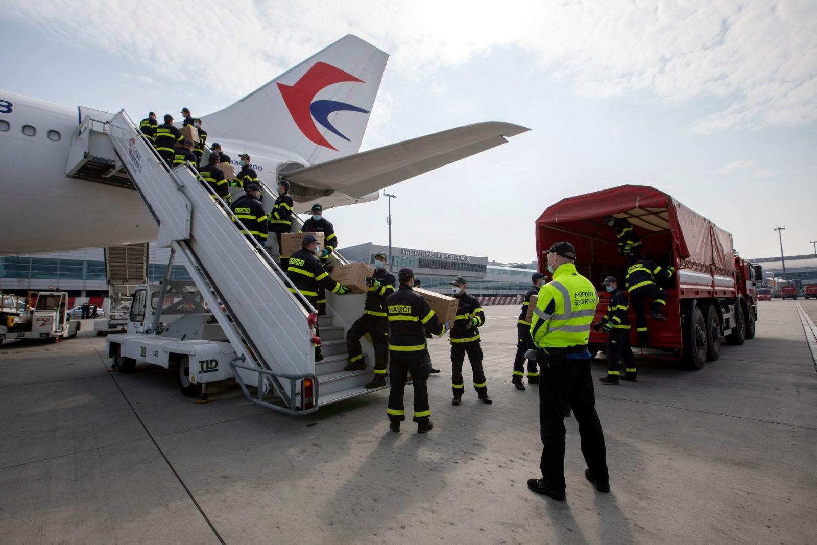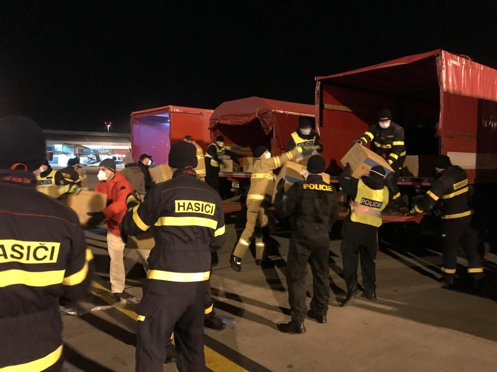 Celkem už takto rozvezli hasiči materiál ze čtyř letadel. Tři letadla přistála v Praze a zde hasiči zajišťovali společně s kolegy HZS Letiště Praha, zaměstnanci letiště a příslušníky PČR vykládku letadla, jedno pak v Pardubicích, kde vykládku zajistila Armáda ČR a hasiči se pak zásob ujali až ve skladu v Opočínku.