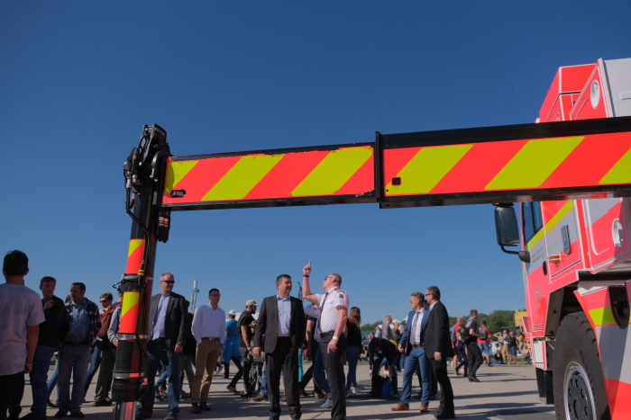 Ministr vnitra si pozorně prohlédl obojživelné vozidlo Hägglunds BV 206 NGR, sloužící pro evakuaci či přesun osob v náročném horském, lesním či bahnitém terénu, o které byl na mošnovské letištní ploše největší zájem ze strany několika tisícovek návštěvníků. Prohlédli si je i s další moderní vystavenou technikou hasičů už v sobotu například poslanec PSP a předseda Podvýboru pro Hasičský záchranný sbor (HZS) ČR Pavel Růžička či generální ředitel HZS ČR genmjr. Drahoslav Ryba.