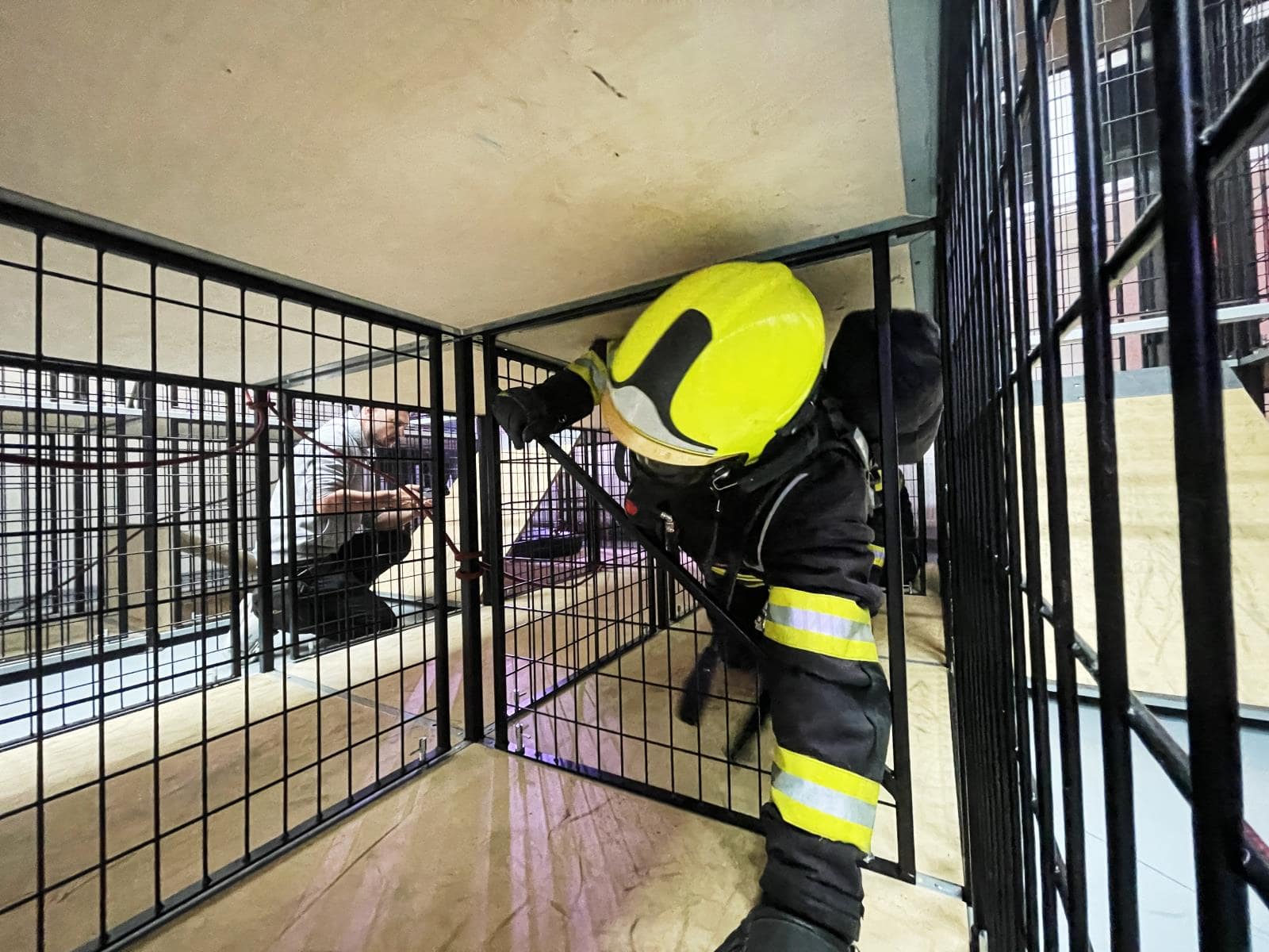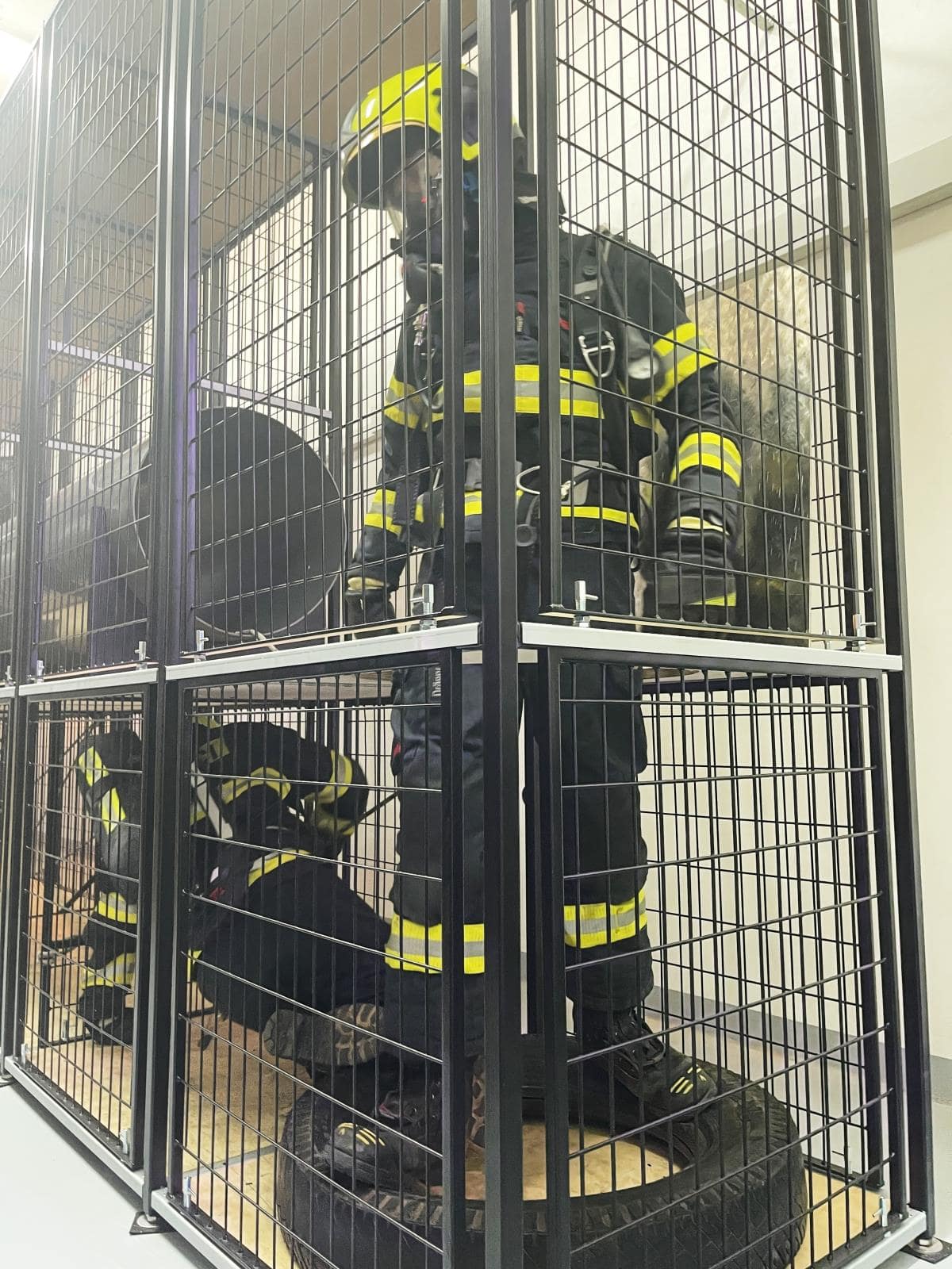 Polygon zahrnuje pět pracovišť: přípravnu, silovou místnost s nekonečnými žebříky a nárazovými zařízeními, technickou místnost pro násilný vstup, centrální ovládací pult a klecovou modulární konstrukci s variabilními překážkami, vyvíječem kouře, reproduktory a kombinovanými termokamerami. Hasiči jsou monitorováni kamerami, což umožňuje okamžitou reakci při zdravotních problémech. Výcvik rovněž testuje referenční spotřebu vzduchu a způsobilost uživatele dýchací techniky.