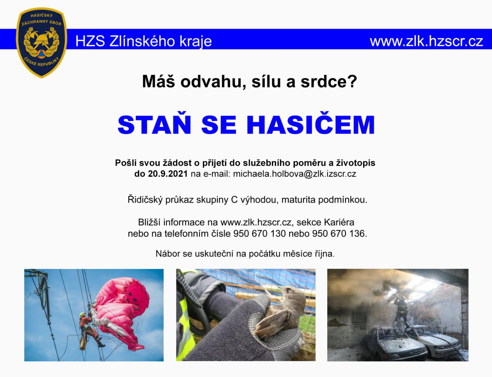 (27.8.2021) Pojďte mezi nás... 🚒 Uvažuješ o povolání hasiče ve Zlínském kraji ? V dohledné době bude další velká příležitost...