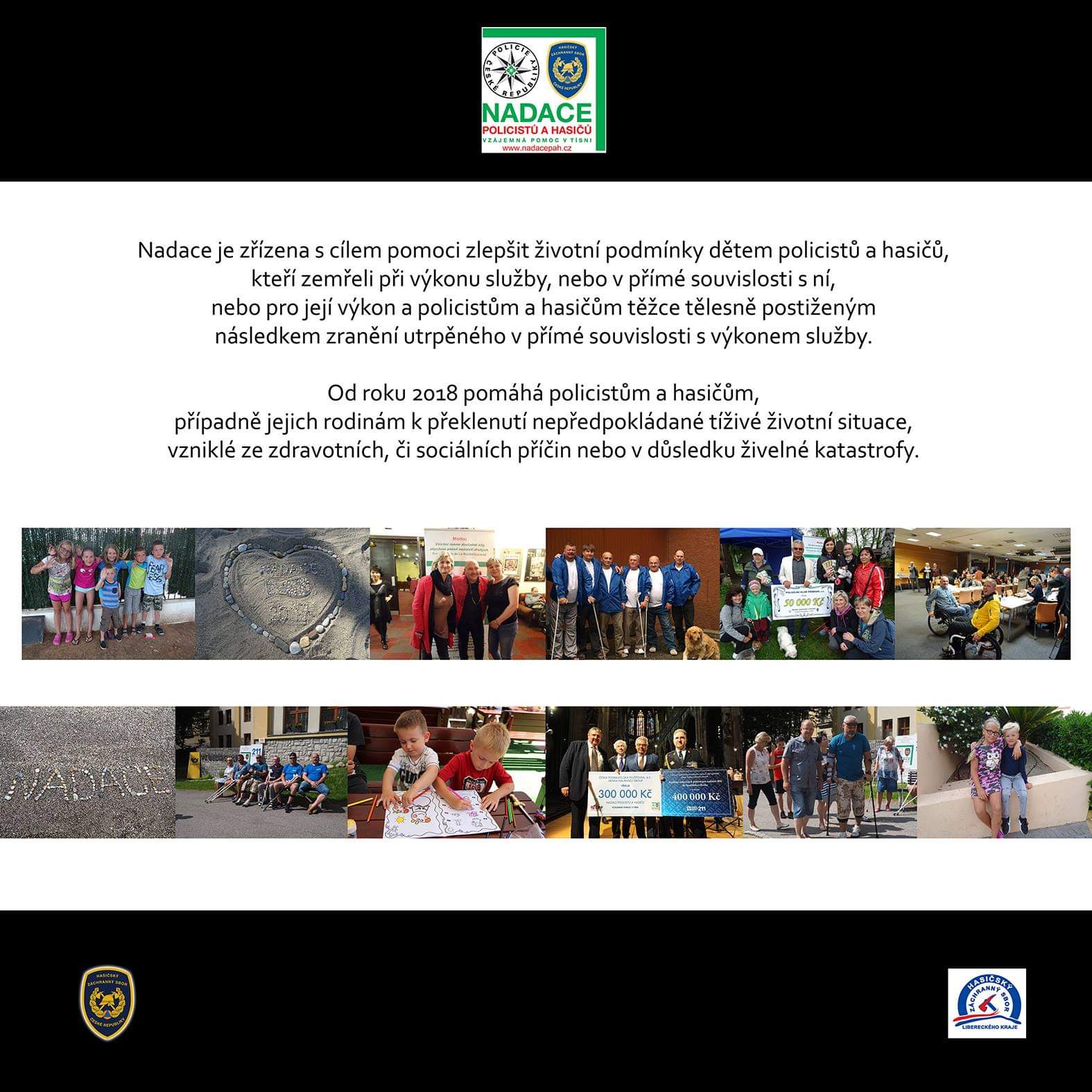 Na každé akci najdete stánek HZS Libereckého kraje. Minimální hodnota příspěvku (daru) pro získání Nadačního kalendáře činí 290,- Kč. Výtěžek bude věnován Nadaci policistů a hasičů. Tímto způsobem chceme finančně pomoci Nadaci policistů a hasičů v jejich záslužné činnosti. Naším cílem je pomoci zlepšit životní podmínky dětem policistů a hasičů, kteří zemřeli při výkonu služby nebo v přímé souvislosti s ní a také policistům a hasičům těžce tělesně postiženým následkem zranění, utrpěného v přímé souvislosti s výkonem služby.