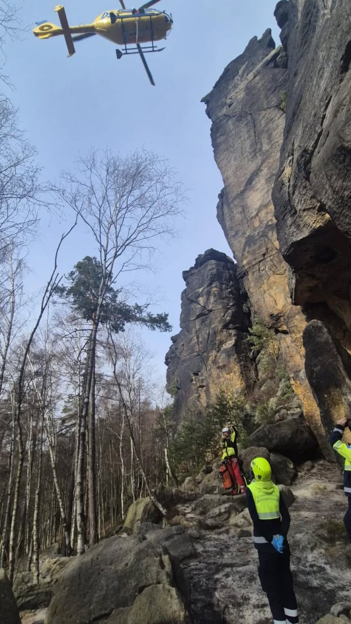 V prvních dnech minulého týdne jarních prázdnin zasahovali záchranáři horské služby a hasiči při několika vážných úrazech v horách. Nedělní 8. 3. 2026 zásah v Labských pískovcích připomněl, že nepozornost a podcenění rizik mohou mít okamžité následky. Nedbalé chování ve skalách nebo při lyžování často vede k vážným poraněním, která vyžadují zásah pozemních posádek ZZS i letecké služby.