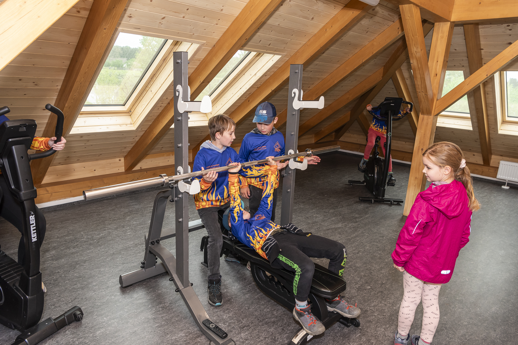 První patro je přístupné pohodlným schodištěm a bezbariérově výtahem. Podkroví je pojato jako otevřený prostor do krovu z lepených hranolů a palubek, nad společenským sálem se zázemím. Osvětlení podkrovních prostor je řešeno střešními okny s elektrickým ovládáním stínění. Nad garáží vznikl prostor klubovny pro děti a posilovna. Sušení hadic je navrženo v šachtě pronikající nad střechu ve formě hranolu obloženého alubondem stejně jako mohutná markýza na severní straně. „Autorka projektu Helena Švecová navrhla na šachtu umístit osvětlené hodiny,“ řekl za projektanty přestavby
