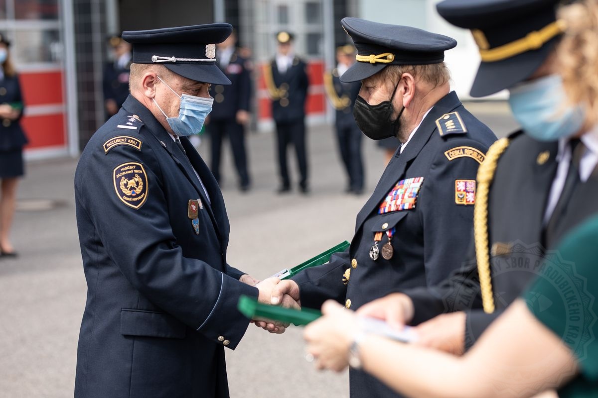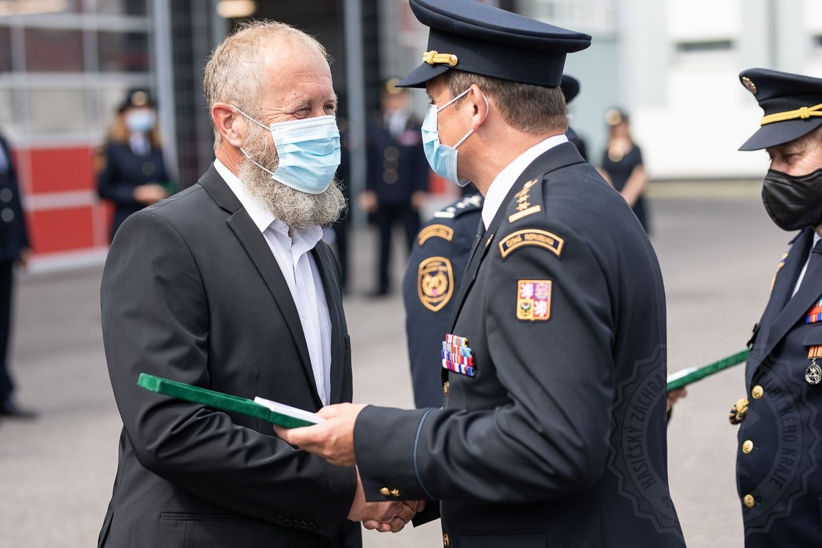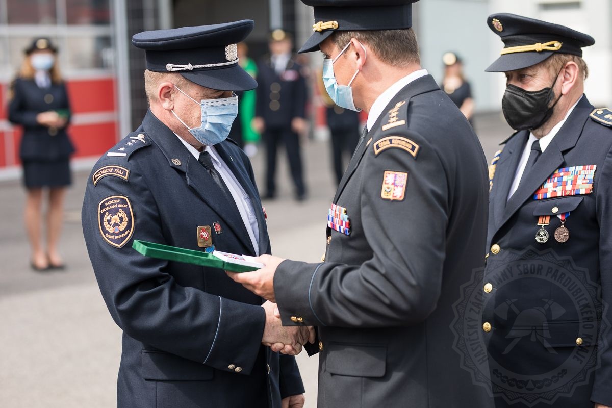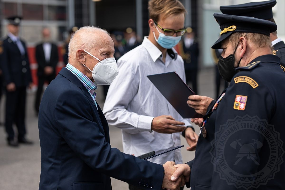 Medaile předával krajský ředitel HZS Pardubického kraje plk. Mgr. Aleš Černohorský, ale i nejvyšší představitelé dobrovolných hasičů v našem kraji Josef Bidmon a Josef Syrůček.