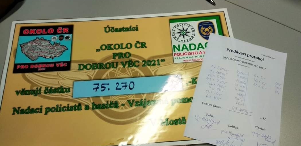Při této akci byla pro potřeby Nadace policistů a hasičů od jezdců po příhraničním okruhu vybrána částka 49 750 Kč, od jezdců vnitrostátního okruhu částka 25 520 Kč. Celkem tedy parádních 75 270 Kč.