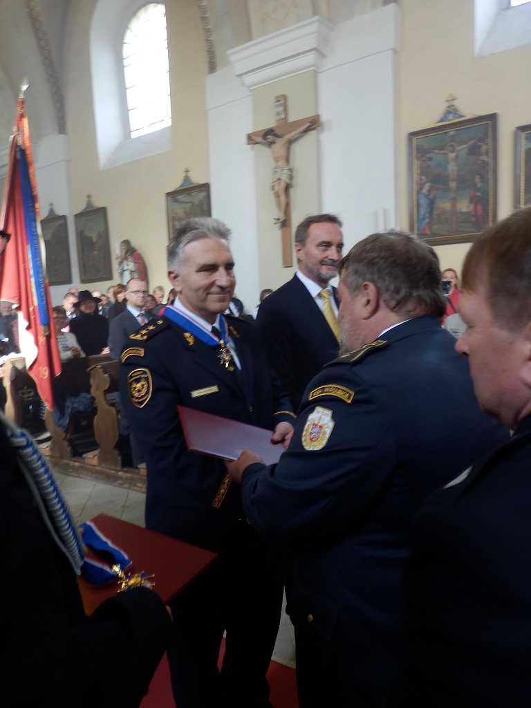 Velkou poctou pro hasiče bylo, že ostatky pro místní farnost převzal a celebroval slavnostní mši biskup Královéhradecké diecéze Mons. Jan Vokál. Také on a přítomný generální ředitel Hasičského záchranného sboru České republiky gen. Drahoslav Ryba a senátor Miroslav Antl dostali od asociace Kříže sv. Floriána. Ten obdržela také profesorka Anděla Floriánová z Plzně.