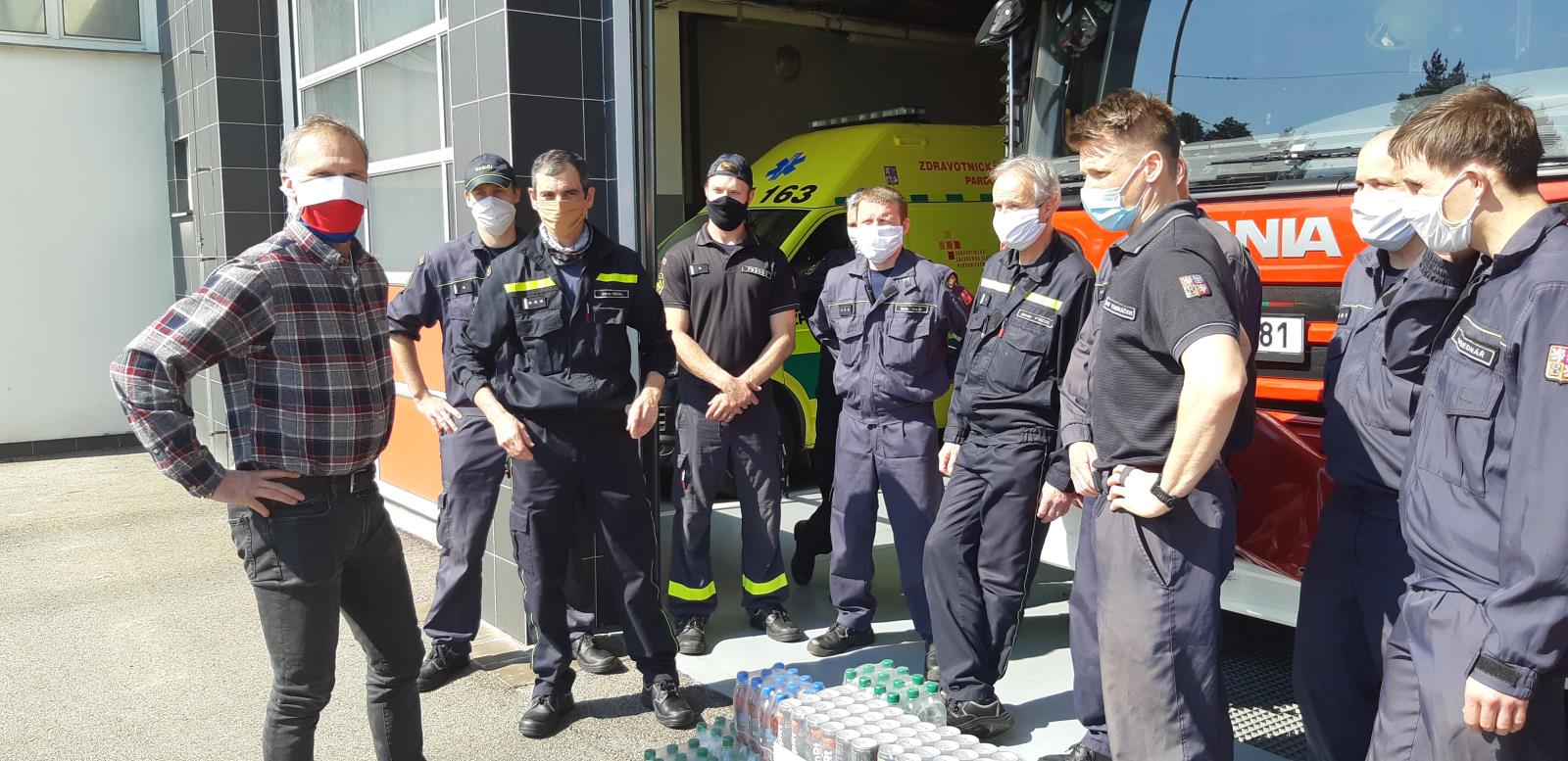 Děkujeme také firmě z Hranic za přírodní dezinfekci, kterou hasiči mohou hned využít.