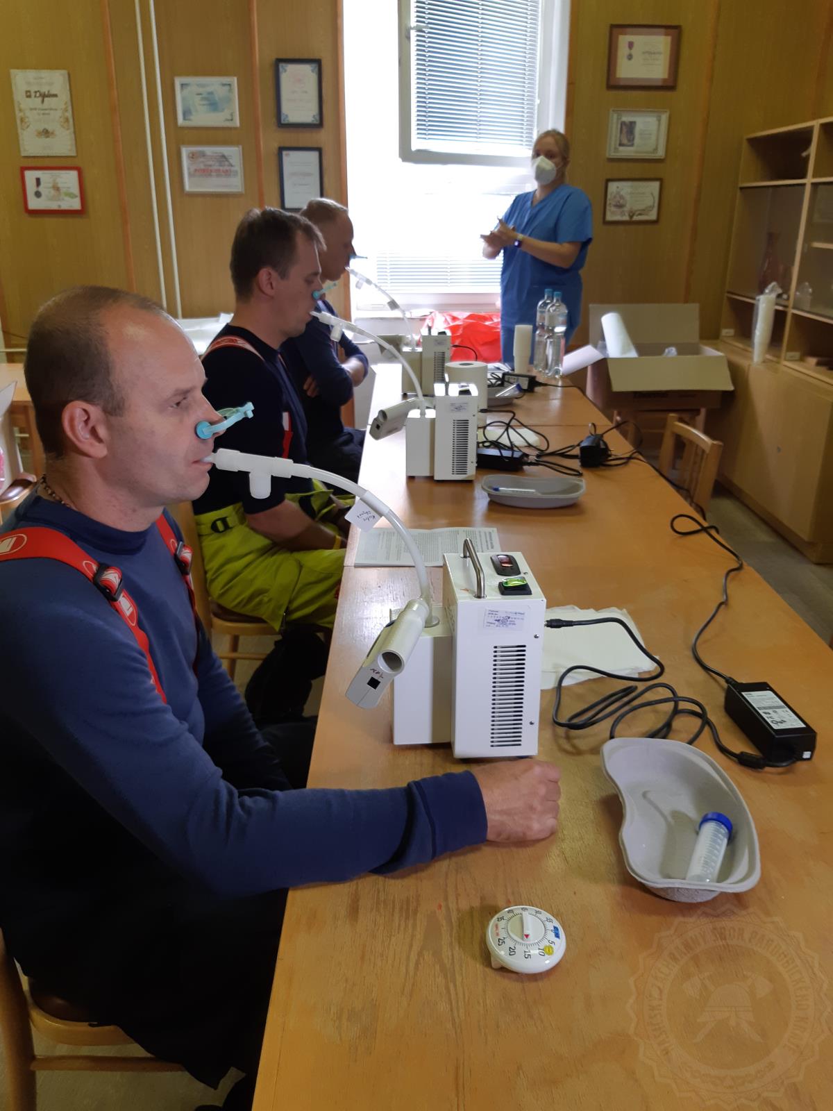 V rámci tohoto projektu byly tedy hasičům odebírány vzorky krve, moči, ale i slin, stejně tak u nich bylo prováděno měření tlaku, tepu, saturace, vydechovaného oxidu dusnatého, spirometrie a další vyšetření.