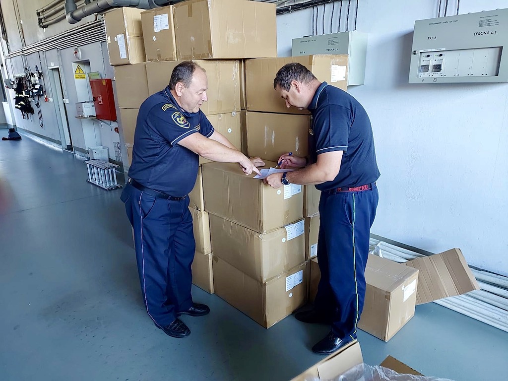 Ve středu byla zásilka přivezena ze skladu v Opočínku, přes 125.000 roušek pak hasiči po Praze rozváželi do čtvrtečních odpoledních hodin.