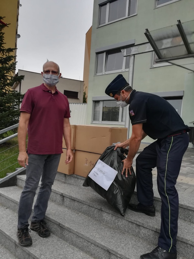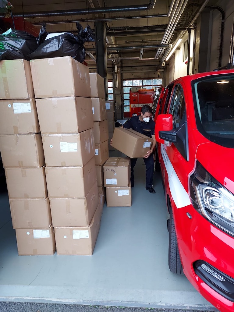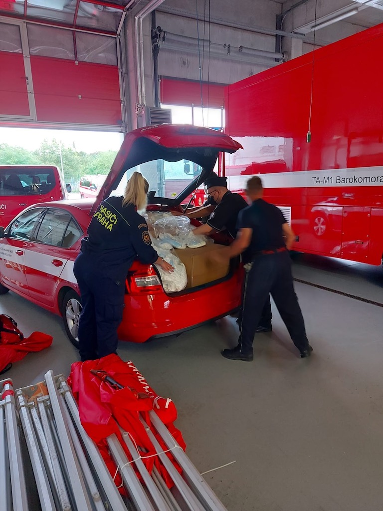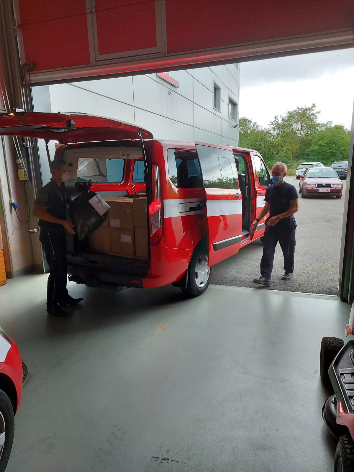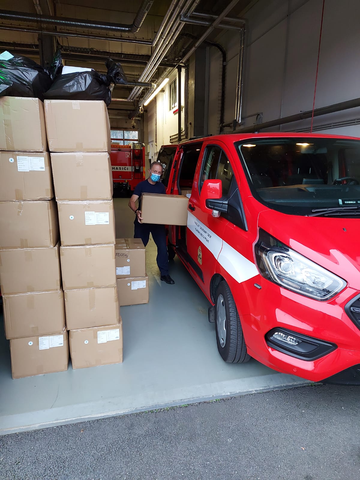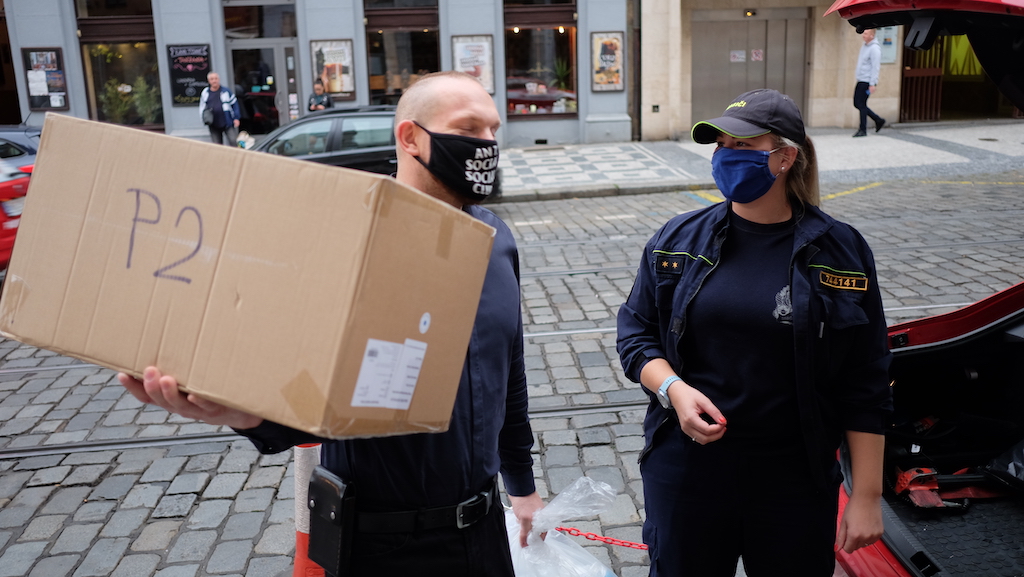 Ve čtvrtek 10. září 2020 pražští hasiči rozvezli do jednotlivých městských částí v Praze roušky, které budou k dispozici občanům ve volebních místností.