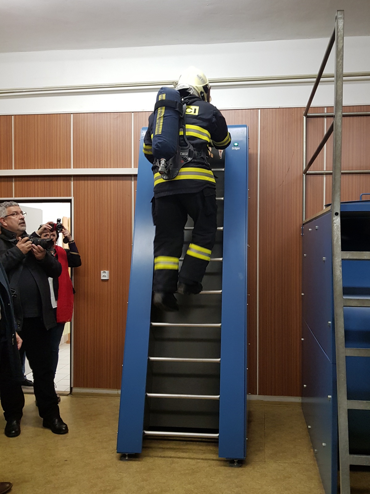 Zajímavostí, kterou delegace při prohlídce stanice nemohla vynechat, je protiplynový polygon. Tím, že je jediný v celém Středočeském kraji, školí v něm příbramští hasiči nejen své profesionální kolegy, ale také členy jednotek sborů dobrovolných hasičů obcí. Pro přítomné byla připravena i krátká praktická ukázka výcviku v polygonu.