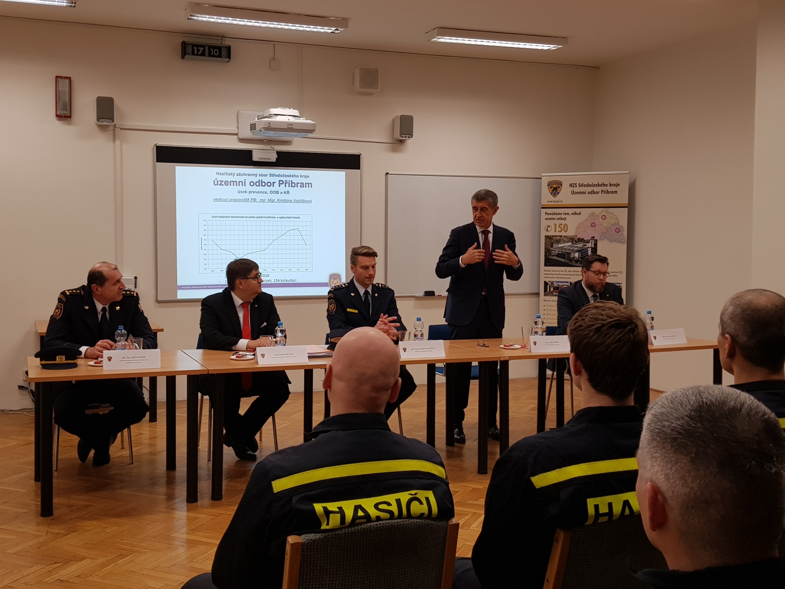 V úterý 25. února v odpoledních hodinách navštívila příbramskou stanici profesionálních hasičů delegace složená z předsedy vlády České republiky Andreje Babiše, starosty Příbrami Jana Konvalinky a dalších členů doprovodu.