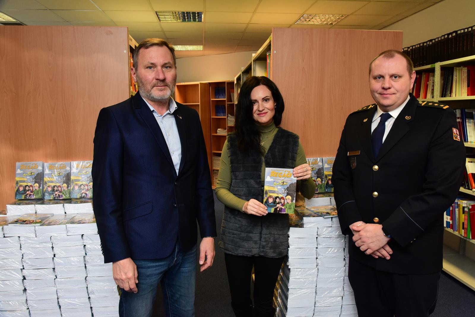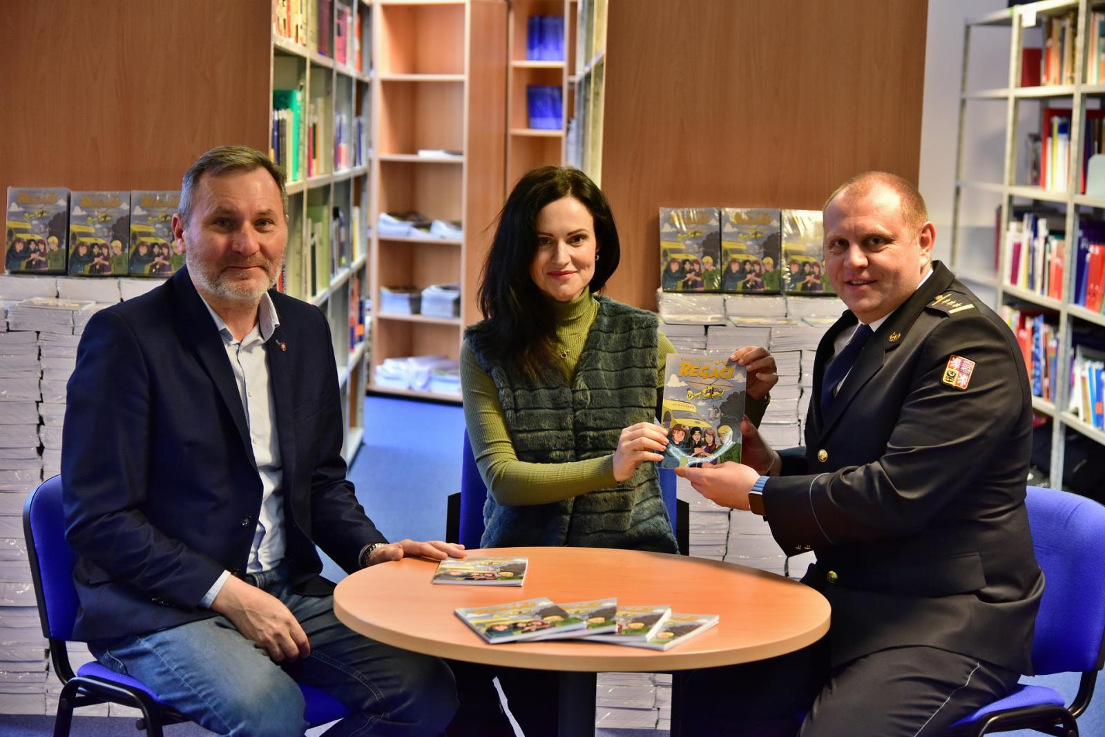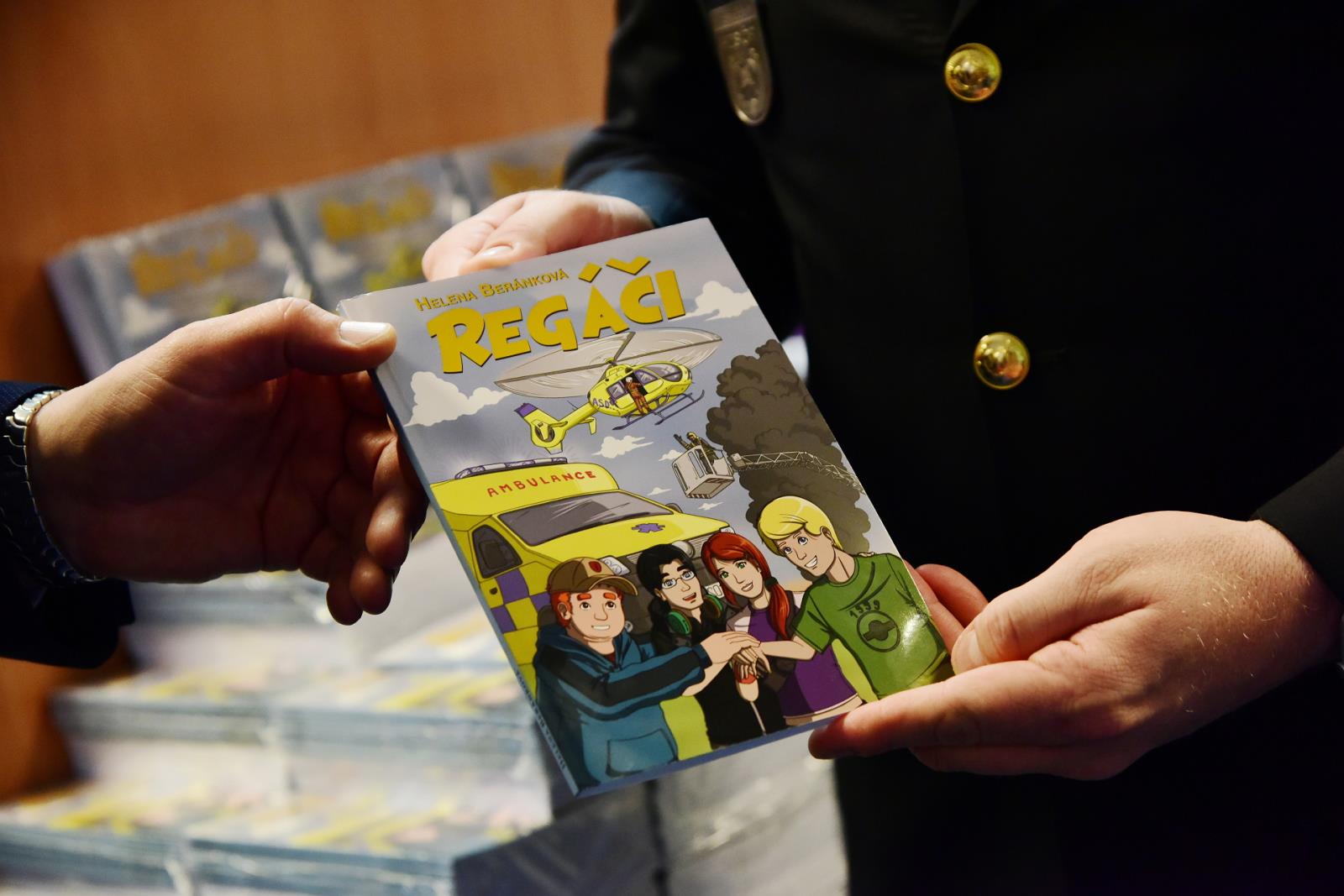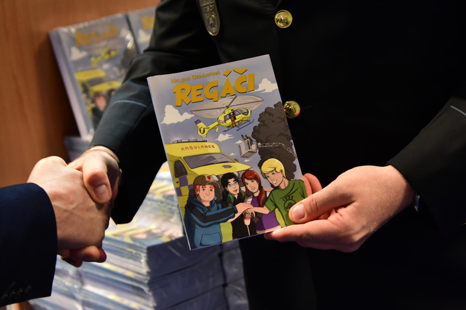 Předání knih proběhlo v budově Generálního ředitelství Hasičského záchranného sboru České republiky. Celkem 4 tisíce knih v hodnotě půl milionu korun si od Libora Adama, ředitele projektu Regáči, převzal náměstek generálního ředitele plk. František Vavera, přítomna byla i samotná autorka knih Helena Beránková. Knihy jsou určeny pro děti, kterým v roce 2023 bylo, nebo má býti 10 – 15 let, a jejichž alespoň jeden zákonný zástupce je v den podepsání darovací smlouvy příslušníkem HZS ČR. Kniha má sloužit pro účely vzdělávání, výchovy nebo prevence.