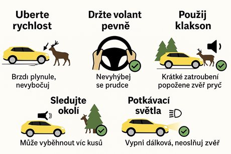Věnovat pozornost okolí vozovky – zvěř často běží ve skupinách.