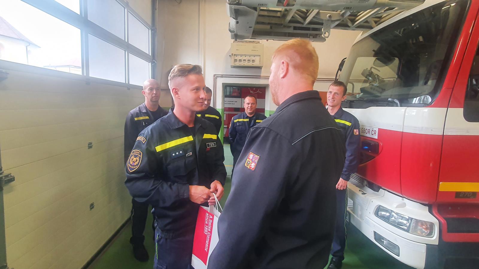 Na stanici v Kaplici zavítal dnes plk. Milan Hořava, statutární zástupce HZS Jihočeského kraje, aby ocenil výjimečný čin nstržm. Roberta Daniela.