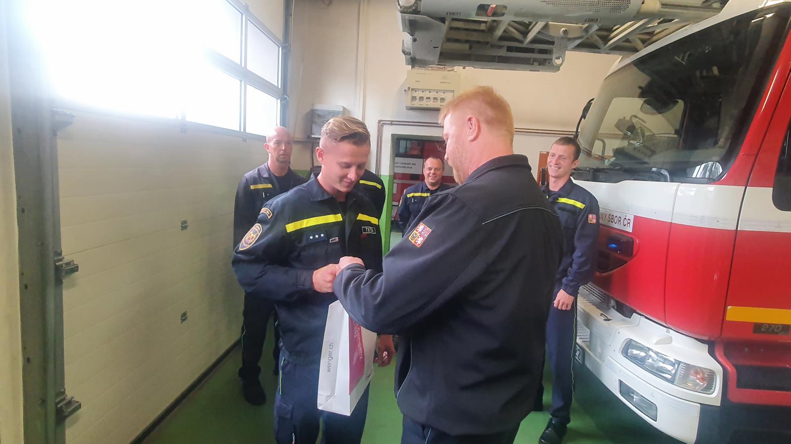 Robert Daniel zachránil lidský život a za to dnes před celou svoji směnou obdržel hodinky jako poděkování za pohotové jednání, za rozhodnost a profesionalitu.