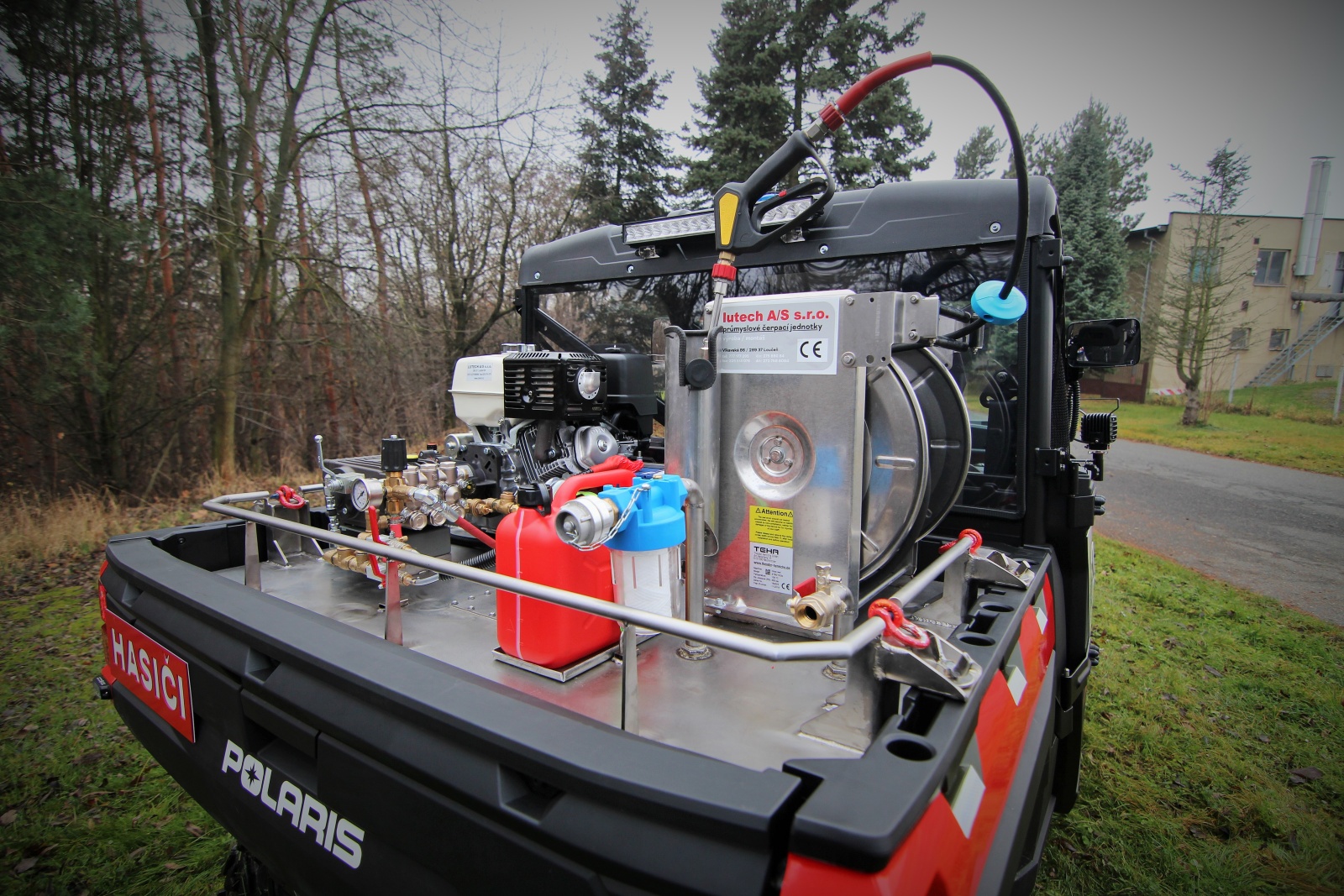 Vysokotlaké hasicí zařízení je poháněno benzínovým motorem Honda s elektrickým startem. Čerpadlo má výkonu 21 litrů za minutu při 200 barech s možností přimíšení hasiva pěnou až do 0,4 procenta. Dále je vybaveno 50metrovou samonavíjecí hadicí s hasicí pistolí s možností přepínání mezi vodou a pěnou. Nádrž na vodu o objemu 230 litrů je z nerezu.