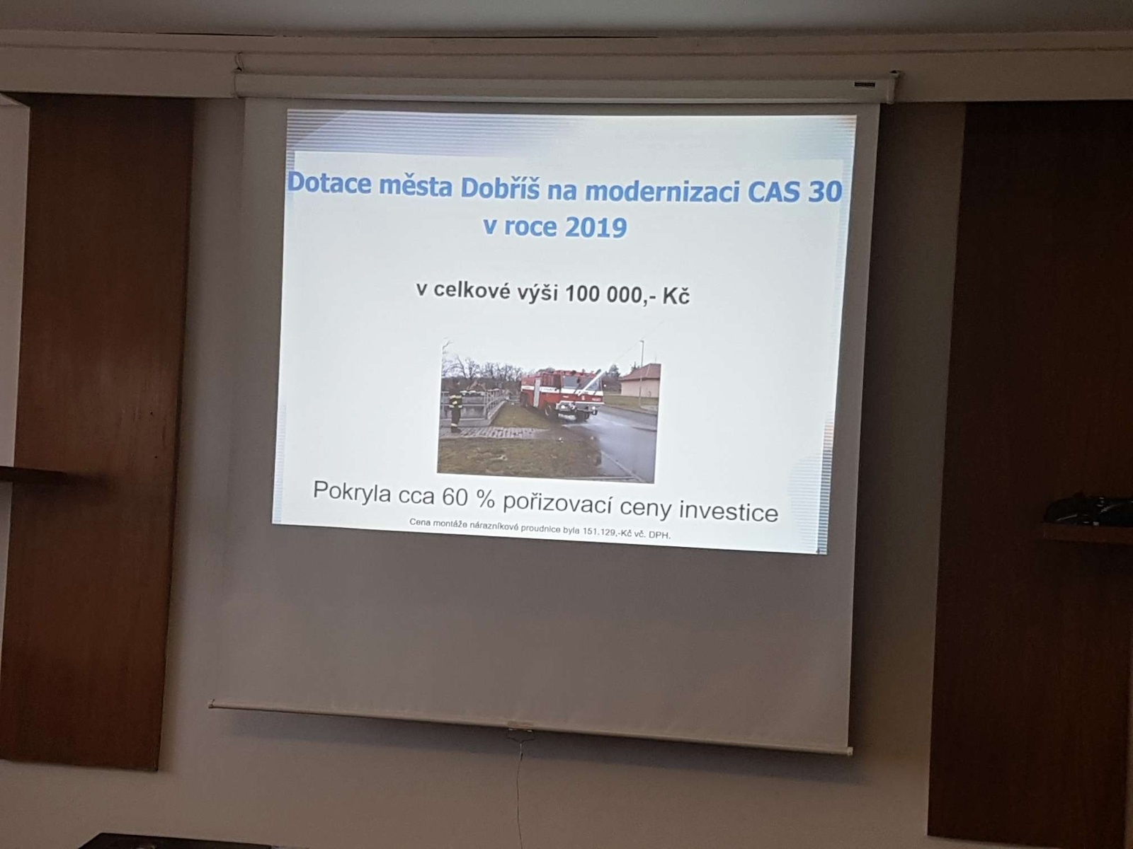 V rámci projektu modernizace cisternové automobilové stříkačky, na kterém se finančně podílelo město Dobříš, byla na toto zásahové vozidlo zhotovena montáž nárazníkové dálkově ovládané lafetové proudnice. Cisterna s novou úpravou byla jednotce předána za účasti ředitele příbramského územního odboru plk. Tomáše Horváta, Ph.D., a velitele stanice HZS Dobříš npor. Ing. Radka Dopiráka. Za město Dobříš se malé slavnosti zúčastnila starostka Bc. Jana Vlnasová.