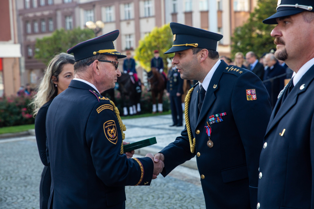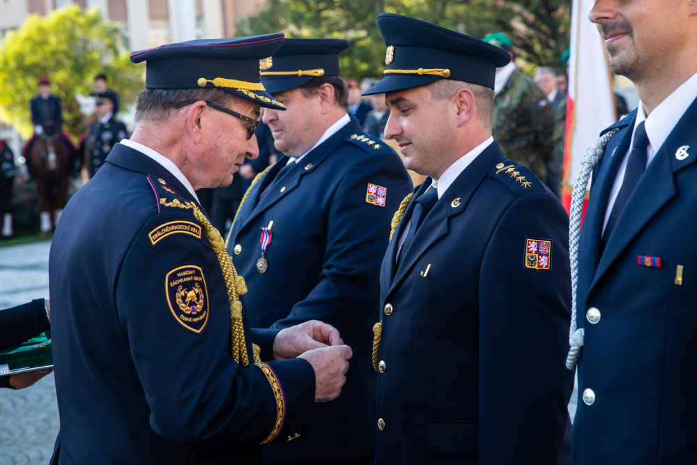 Při této slavnostní příležitosti byly mimo jiné uděleny rezortní medaile třinácti dlouholetým příslušníkům HZS Královéhradeckého kraje. Medaile jsou oceněním za vzorné plnění služebních povinností za více jak 20 a 10 let služby. Vyznamenání předal hasičům ředitel HZS Královéhradeckého kraje brig. gen. František Mencl.