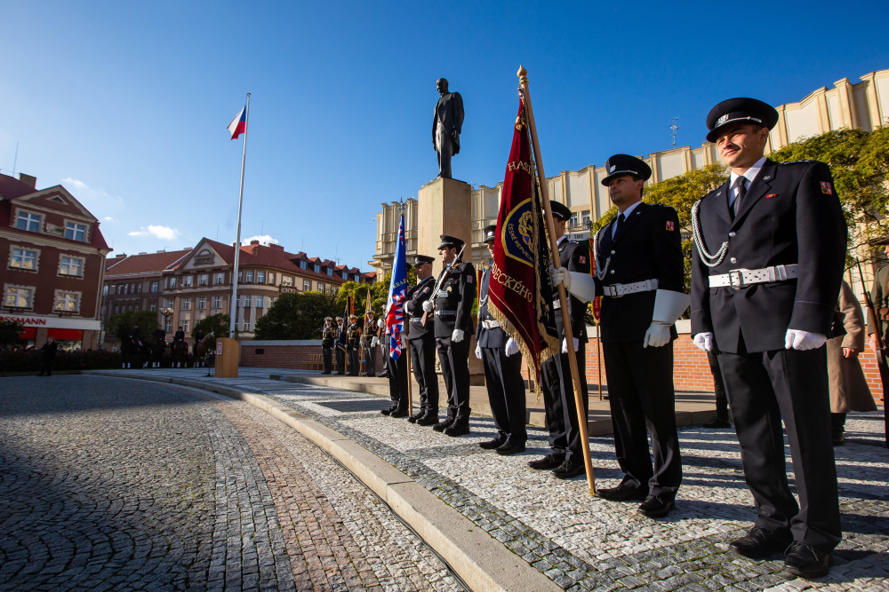 Masarykovo náměstí v centru města Hradec Králové se stalo ve sváteční den vzpomínkovým místem, kde si všichni přítomní připomněli Den vzniku samostatného československého státu. Položit věnec a květinu k pomníku prvního československého prezidenta přišli primátor města Hradec Králové Alexandr Hrabálek, hejtman Královéhradeckého kraje Jiří Štěpán, ředitel HZS Královéhradeckého kraje brig. gen. František Mencl, ředitel Krajského ředitelství policie Královéhradeckého kraje plk. David Fulka a další představitelé státní správy, samosprávy a dalších institucí.