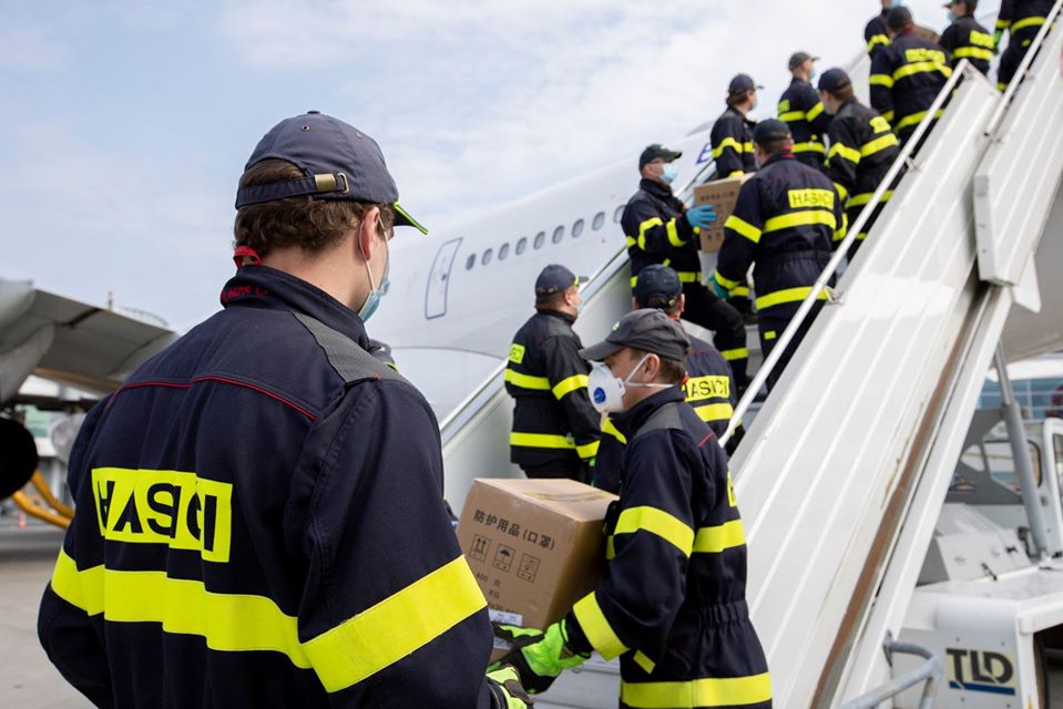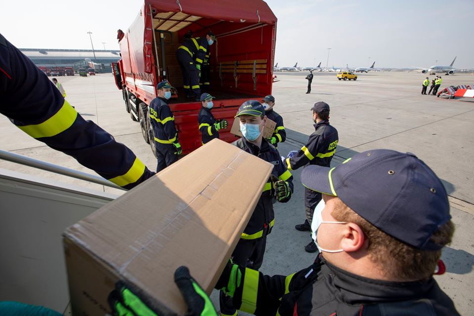 Hasiči ze Záchranného útvaru HZS ČR již včera překládali na Letišti Václava Havla více než milion roušek, které jsou určeny hlavně pro zdravotnický personál. Z největšího meziskladu v České republice, kterým se stal policejní sklad v Opočínku, profesionální hasiči třídili a rozdělovali materiál, který putoval do jednotlivých krajů.