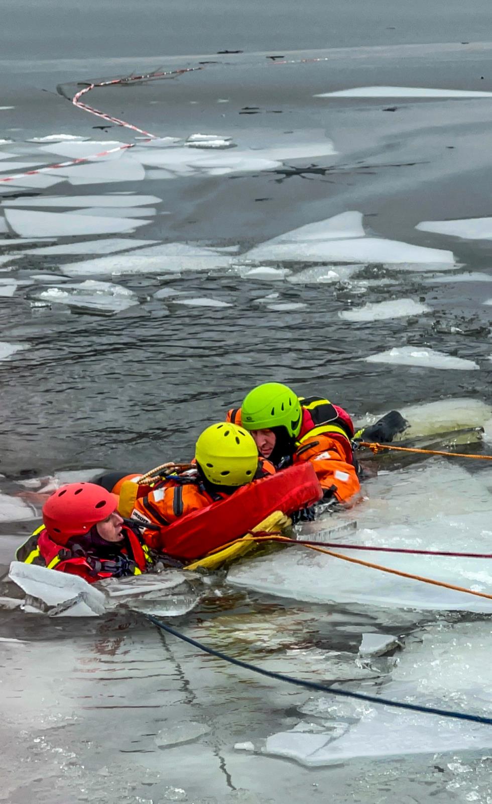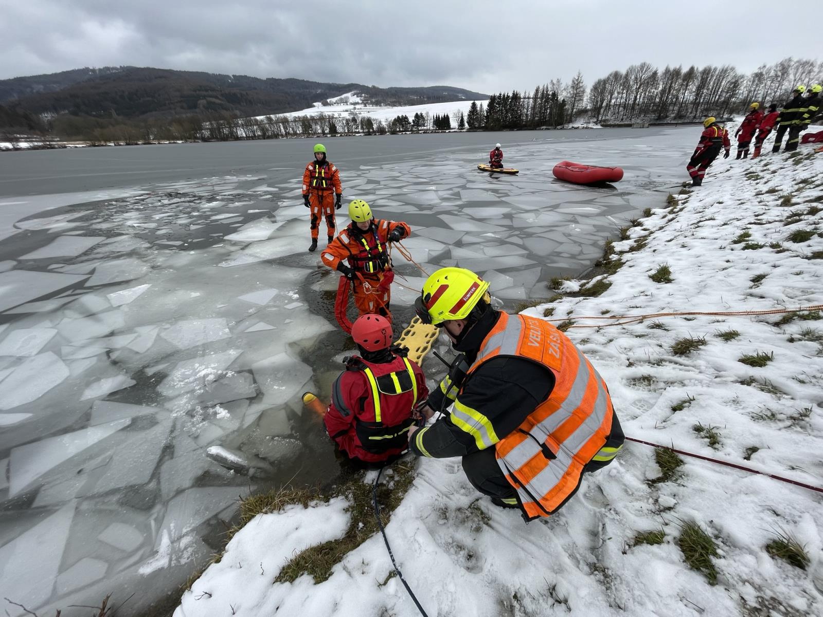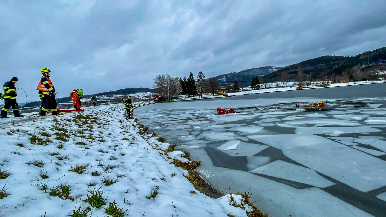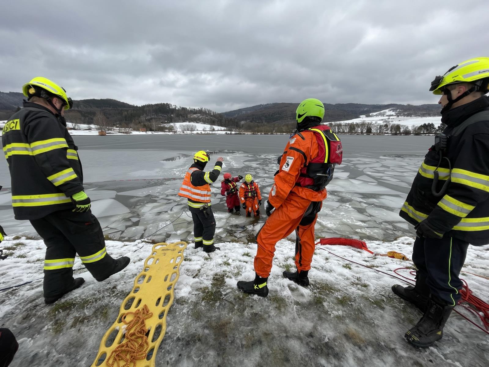 Proto v zimních měsících všichni hasiči zařazení ve výjezdových jednotkách absolvují výcvik záchrany z ledu. Na videu se tak můžete podívat na středeční cvičení na vodní nádrži Krásné na Šumpersku, kde má v současné chvíli ledová vrstva do pěti centimetrů. Šumperští hasiči zde trénovali různé metody záchrany tonoucího a jeho transport po nestabilním ledu na břeh. Podle scénáře měli zajistit tonoucího při vědomí, v bezvědomí, poradit si museli také s člověkem, který se při záchraně ve stresu brání. Využili různé záchranné metody a prostředky, jako například páteřní desku, házecí pytlíky či záchranný pás. Součástí výcviků bývá také nasazení nafukovacího člunu, pokud to přírodní podmínky a ledová vrstva dovolí.