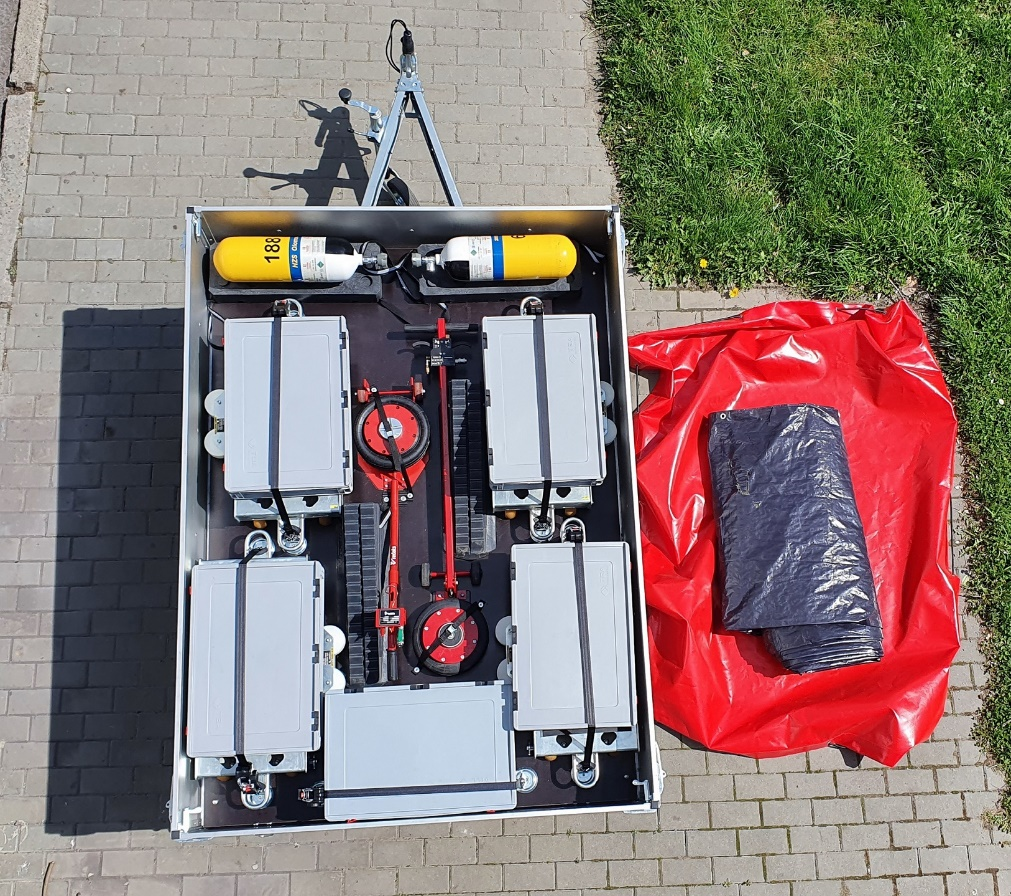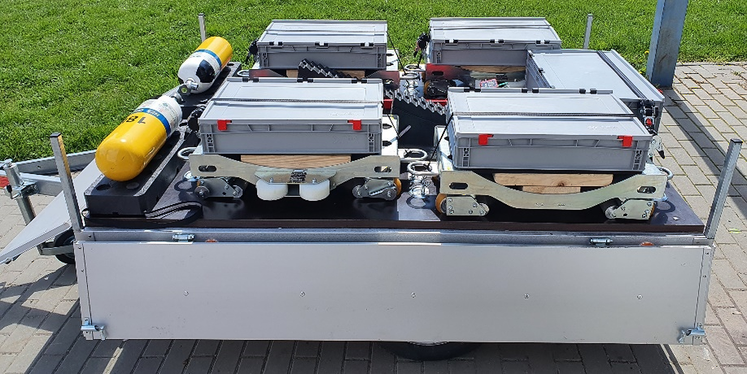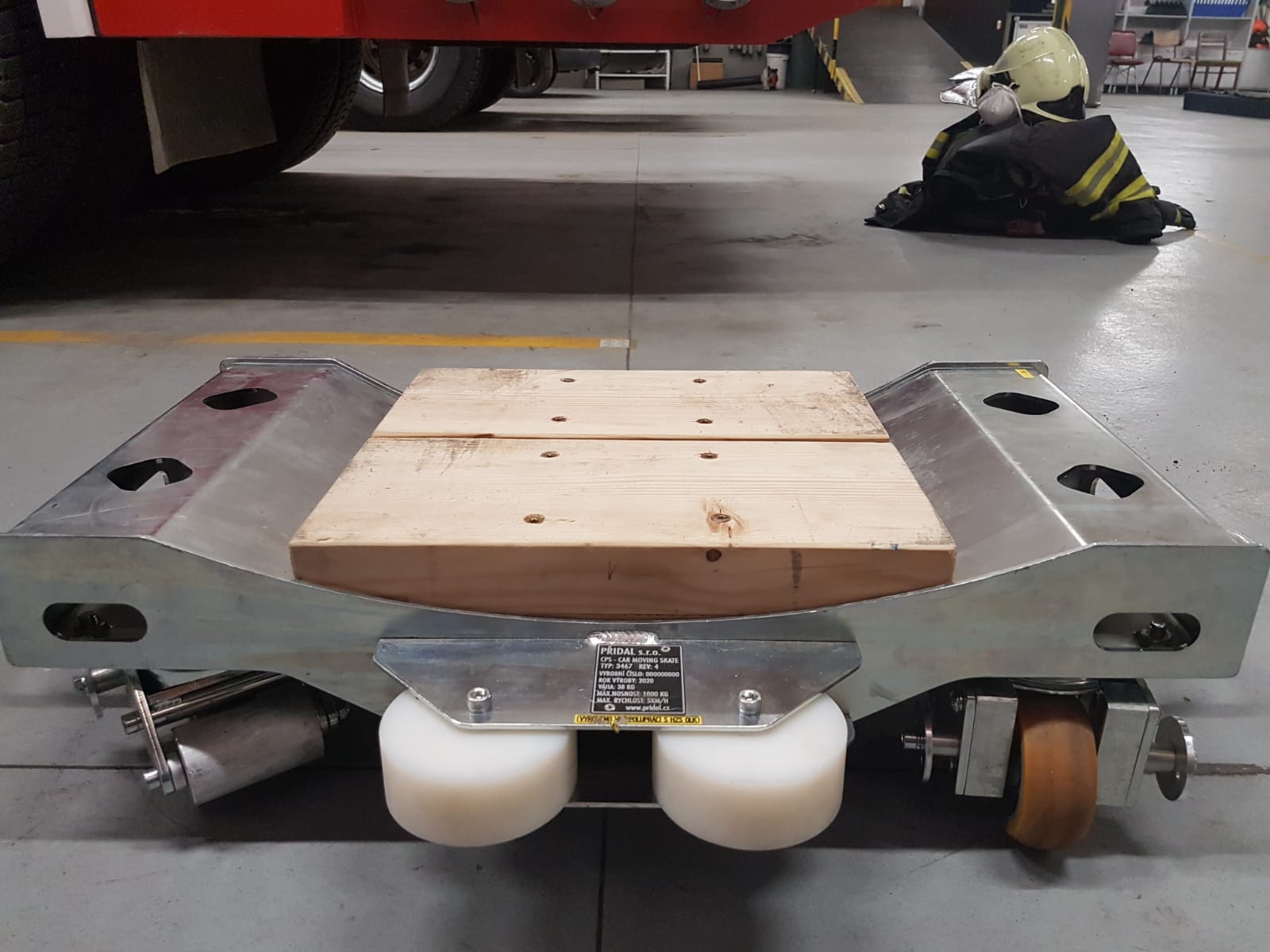 Technické prostředky vyvinuli hasiči ve spolupráci se soukromou společností, s níž museli při konstrukci vozíků vyřešit hned několik problémů. Při podrobném průzkumu trhu totiž zjistili, že transportní vozíky sice již existují, používají se však pouze na konkrétní typ převozu, například v autodílnách nebo showroomech. Tento typ nebyl z mnoha důvodů pro hasičské účely vhodný (váhové limity, překážky, zpomalovací prahy, nájezdové rampy, výškové rozdíly atd.). Proto byl vyvinut nový, jehož konstrukce je velmi pevná a odolá i méně šetrnému zacházení, kterému se u zásahu mnohdy není možné vyhnout. Velkou výhodou je transport vozu samotnými hasiči, ale i vlečným, popřípadě brzdným automobilem.