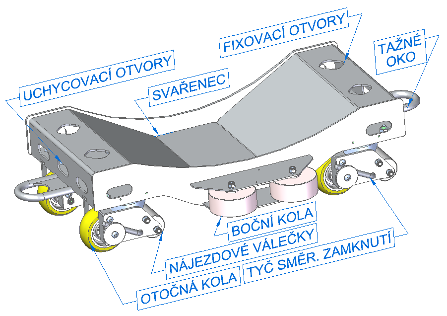 Zásadní součástí sady pro manipulaci s vozidly je speciálně konstrukčně upravený transportní vozík