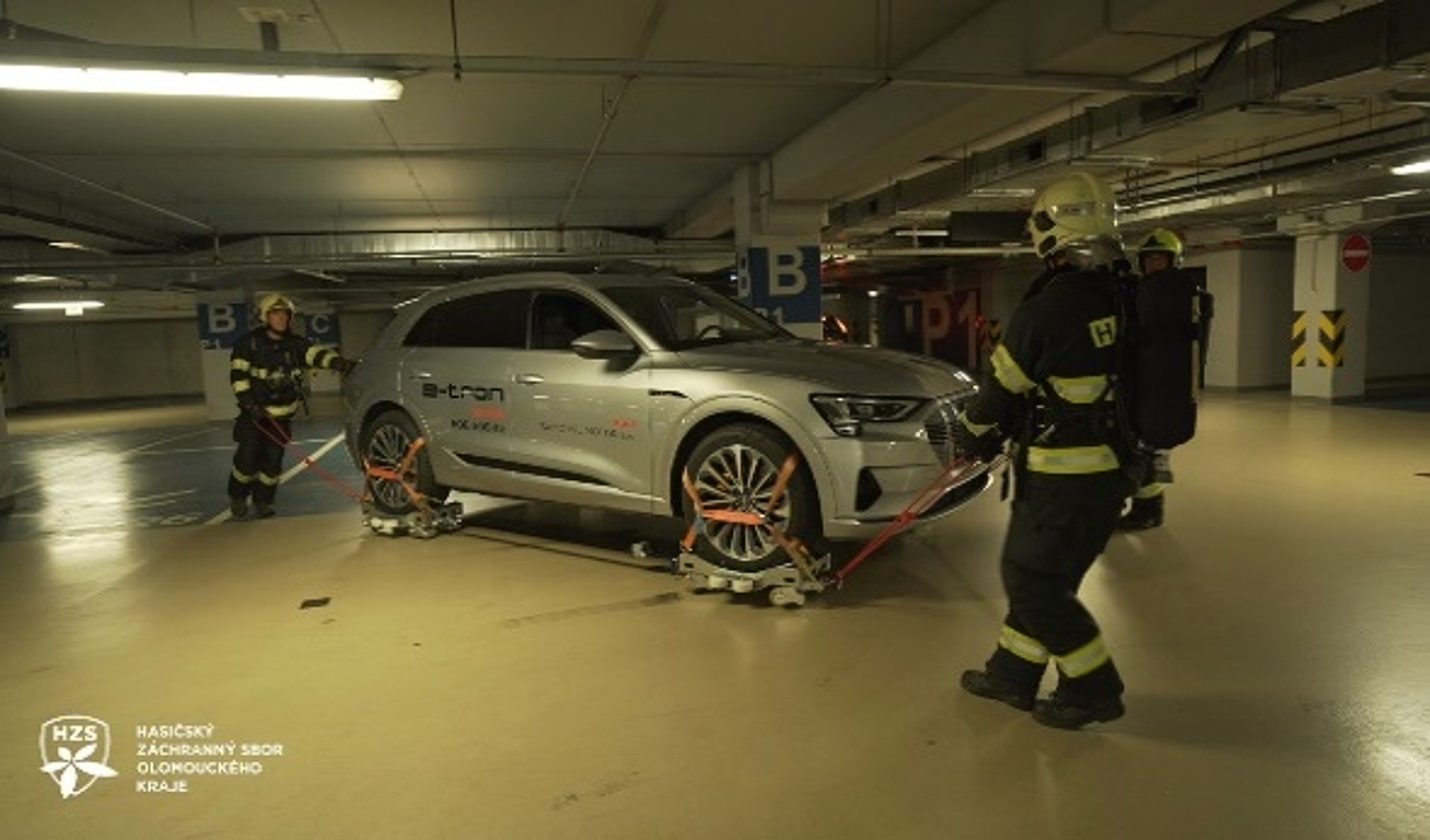 Zapouzdřené baterie uvnitř vozu podle zkušeností ze světa i Česka představují komplikaci při hašení. A to zejména proto, že k vývoji tepla a zplodin hoření dochází uvnitř skrytého a nedostupného akumulátoru. Jak tedy efektivně zvládnout takovou situaci? S řešením nyní přišli hasiči z HZS Olomouckého kraje, kteří vyvinuli ve spolupráci se soukromou strojírenskou společností speciální sadu technických prostředků pro manipulaci s vozidly. V podstatě se jedná o soubor unikátních pojízdných vozíků. Na ně se částečně uhašený vůz naloží a vyveze se z ohroženého prostoru na volné prostranství, kde se poté může bezpečně pokračovat v jeho ochlazování a hasebním zásahu. V rámci České republiky i Evropy jde o jedinečný technický prostředek, díky němuž se urychlí a zefektivní zásah hasičů a zásadně se eliminují škody i následky požárů vozidel na alternativní pohon.