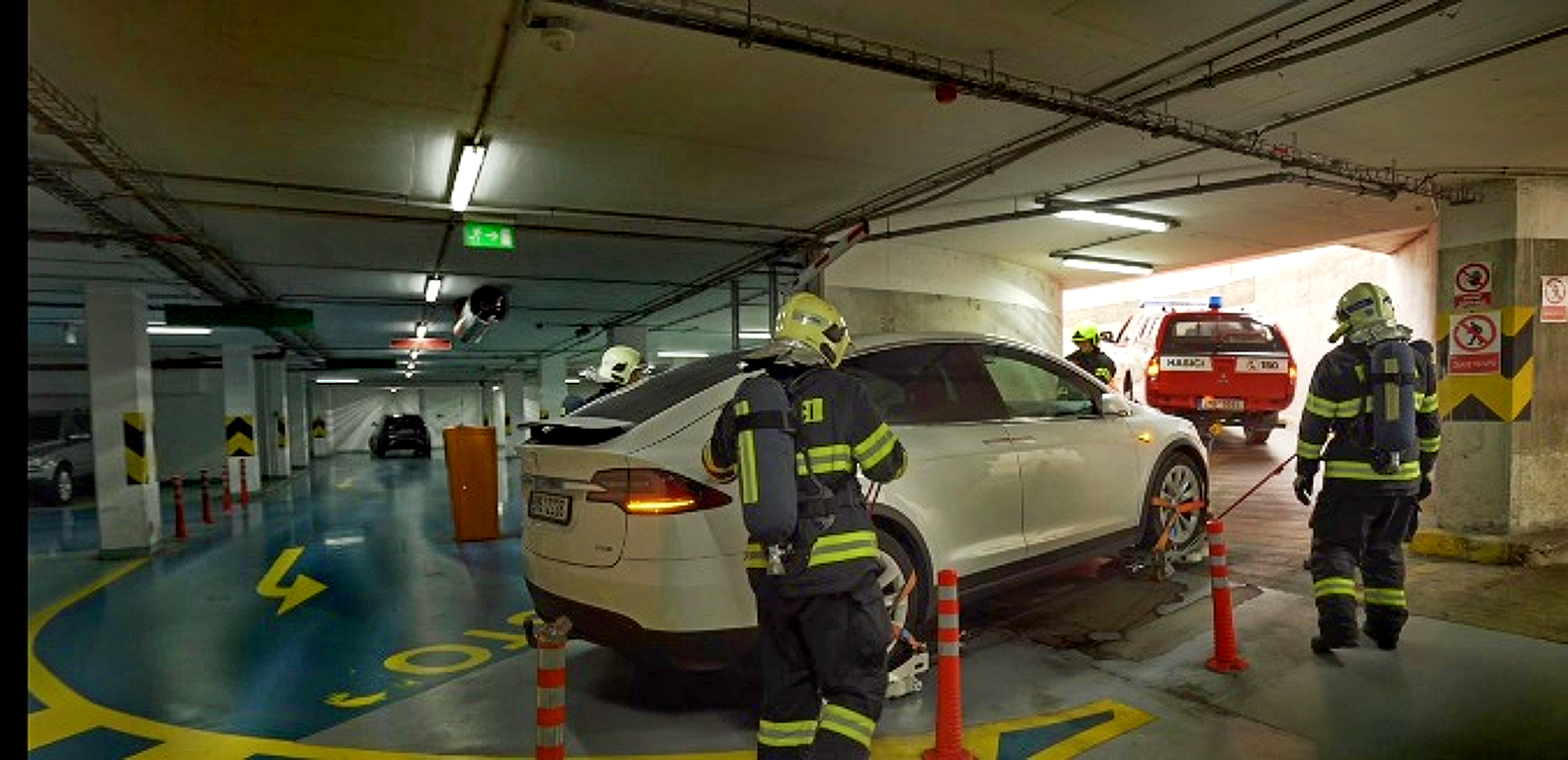 Hoří automobil v podzemní garáži. Prostor se rychle plní kouřem a jedovatými zplodinami, požár ohrožuje přítomné osoby i sousední auta. To je situace, s níž se hasiči setkávají běžně. A umějí si s ní díky dobře zavedeným a prověřeným postupům poradit. Co když zde ale dojde k požáru vozidla na elektrický, nebo hybridní pohon?