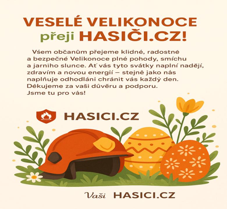 Veselé Velikonoce přejí Hasiči.cz! Užijte si svátky plné pohody, bezpečí a jarní energie. Děkujeme, že jste s námi.