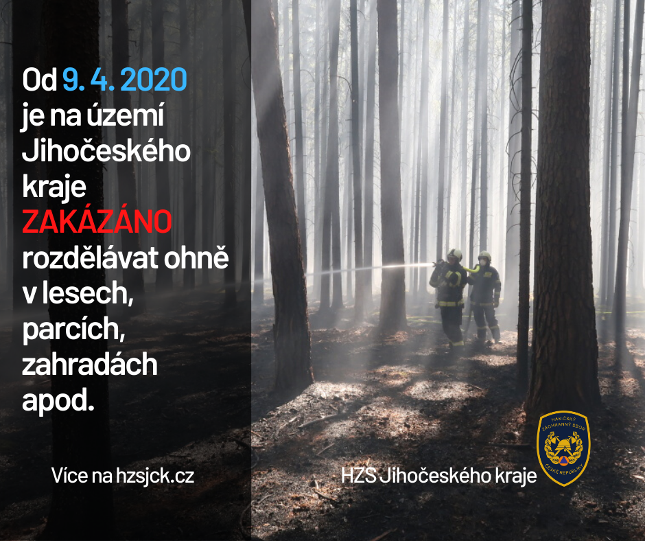 Hejtmanka Jihočeského kraje vydala (9. dubna 2020) rozhodnutí o vyhlášení období zvýšeného nebezpečí vzniku požáru (č. 1/2020...